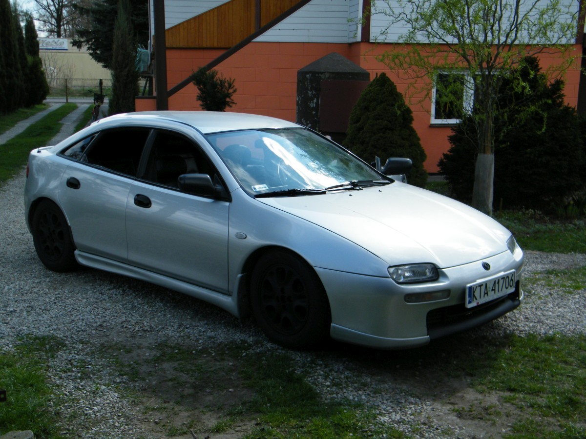 Mazda z '97 roku, kupiona w 2014, beż żadnych dodatków i udziwnień.