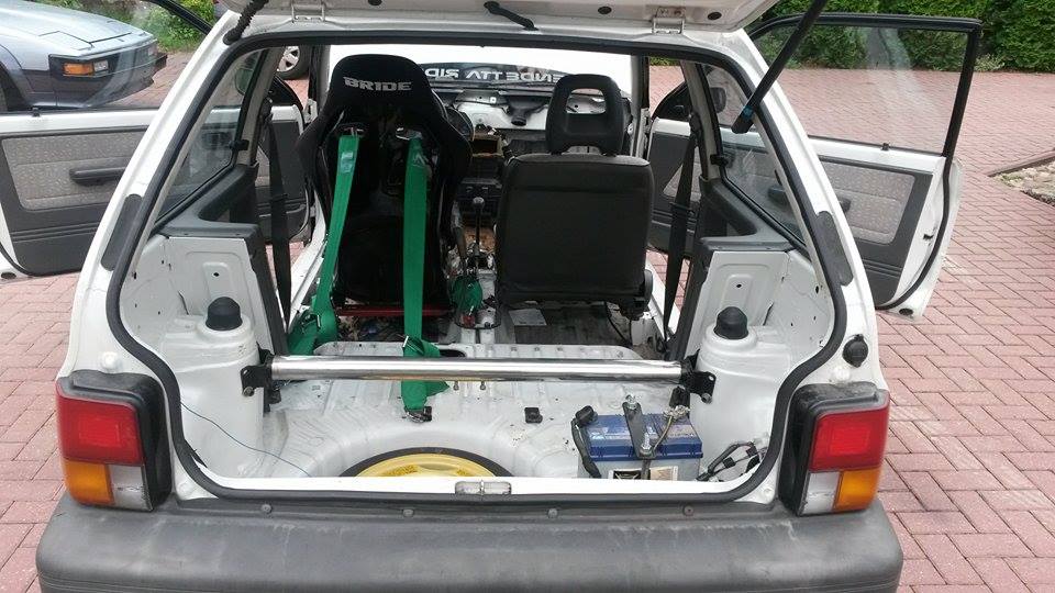 121 w tym momencie goni subaraki po torze także nie jest żle większość cześci eksploatacyjnych jest nowa. Zastanawiam się nad sprzedażą bo nie mam czasu na dalsze dłubanie przez ostatnie 3 lata ten samochód nie zrobił 1000 km. Posiadam do niej wszystkie graty by złozyć ja na orginał do tego dorzucam jeszcze orginalny silnik któy tez jest w świetnej formie zawieszenie chamulce kilka sprzegieł kilka skrzyn biegów i jesli by ktoś chciał to nawet druga budę ale raczej z wykorzystaniem tylko jako schowek xd chyba ze przydadzą się szyby. Posiadam jeszcze 323 BG GT w której zacząłem renowacje i równiez zastanawiam się nad jej sprzedażą.