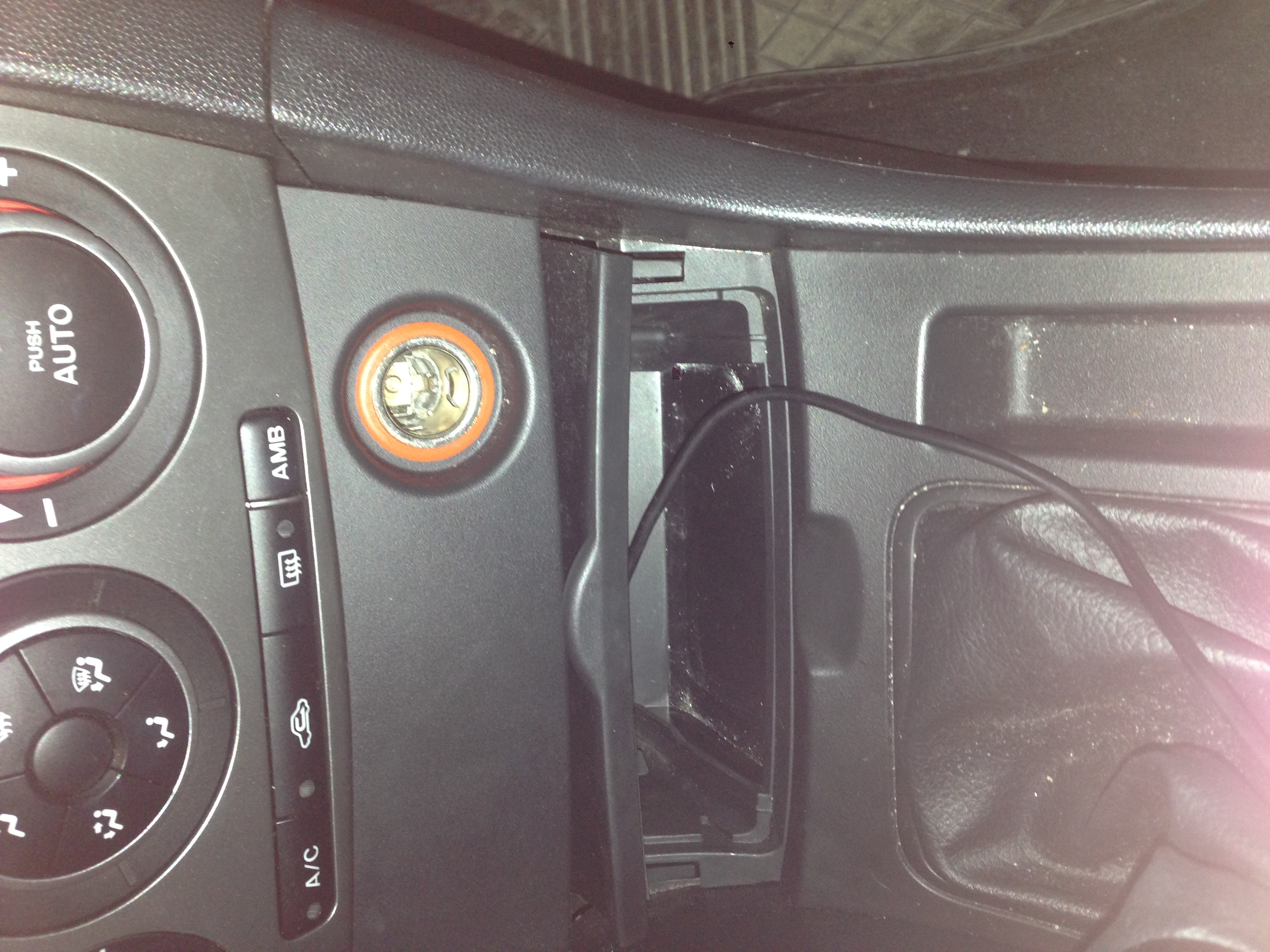 Otwarty schowek z zwiniętym kabelkiem.