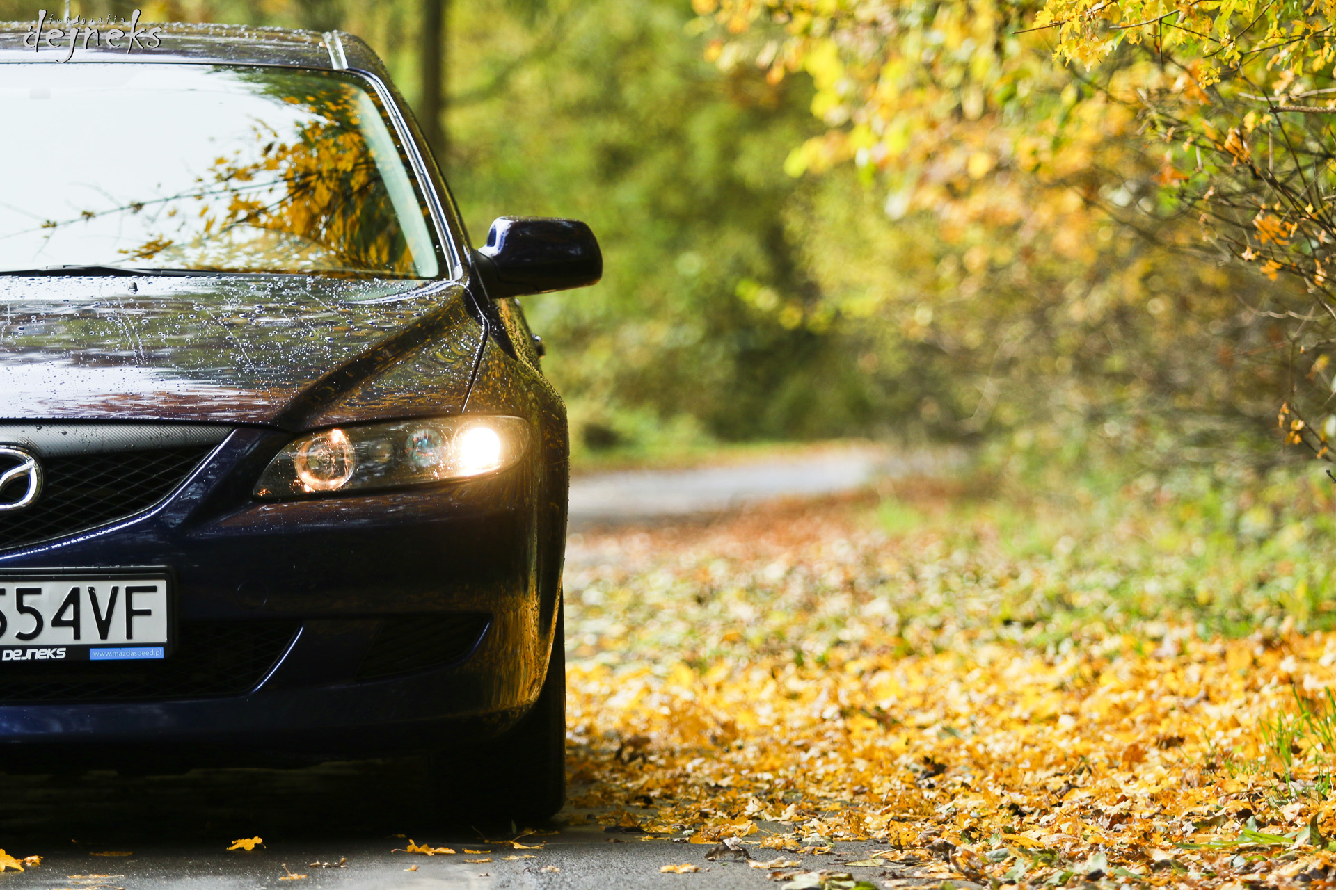 Mariusz 2 osoby dużo liści na drodze auto w pedzie liscie w powietrzu i wtedy foto .