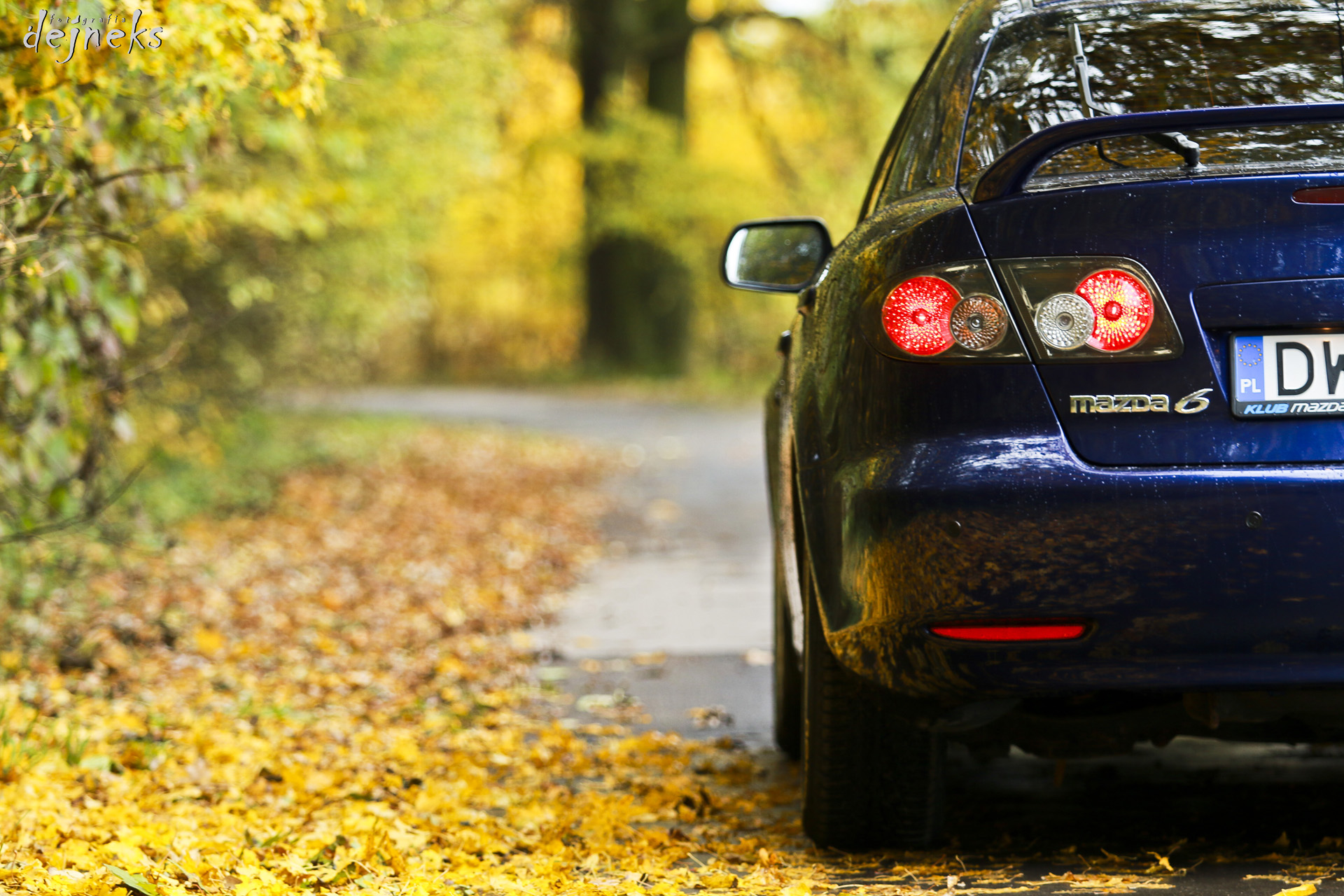 Mariusz 2 osoby dużo liści na drodze auto w pedzie liscie w powietrzu i wtedy foto .