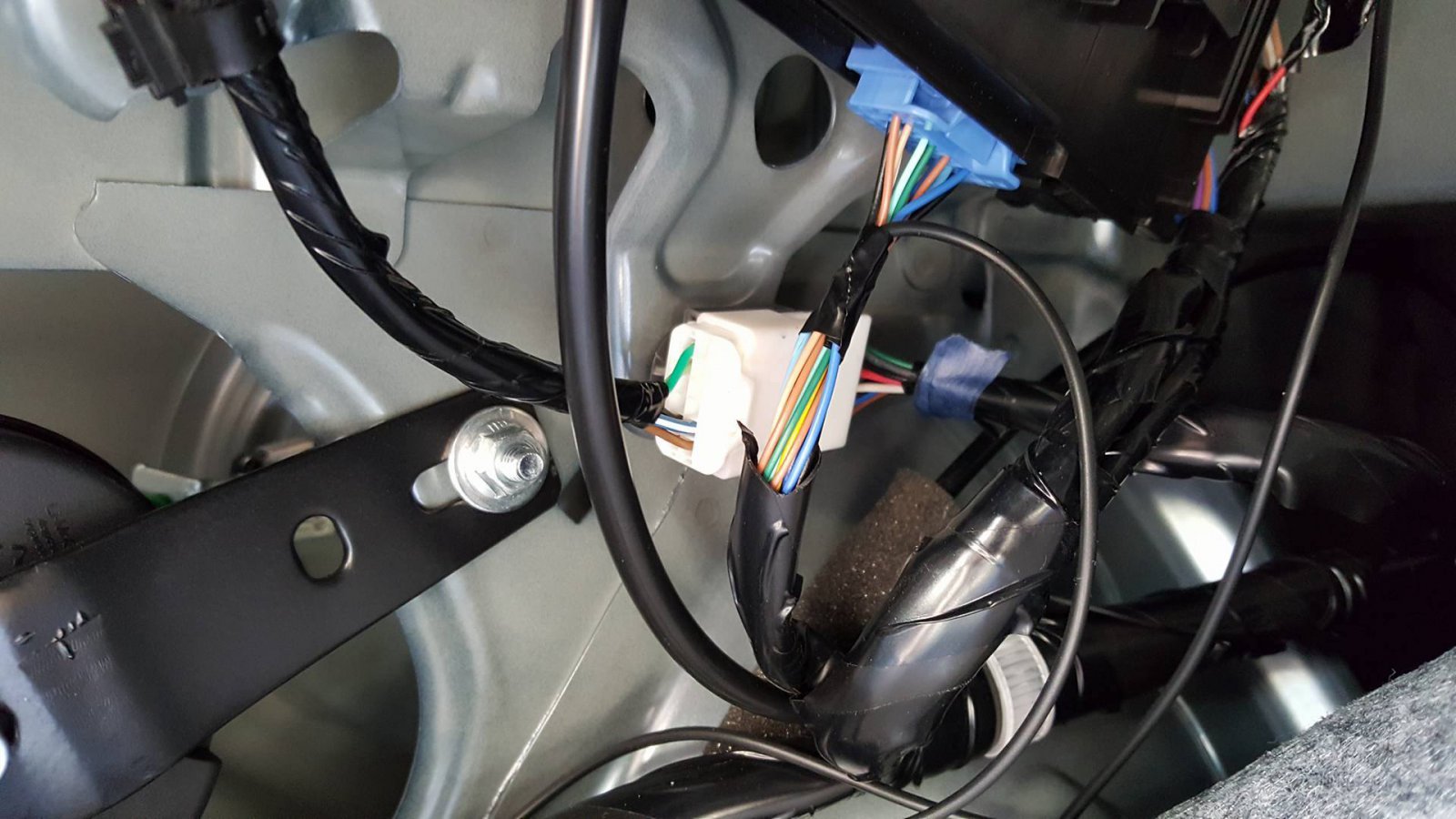 Rafał, przeczytaj uważnie wcześniejsze posty. Wkleiłeś zdj. 3i 4 i tam masz tą białą kostkę c-16 do której masz się wpiąć wg mojego postu powyżej lub wcześniejszych. Na zdjęciu 4 widać 4 obok siebie wolne miejsca, gdzie należy wpiąć 4 kable z kamery, lub wpinasz się w kable przed kostką jak nie masz pinów ( konektorów) właściwych.Ta wiązka czarna w klapie Cię wogóle nie interesuje, po niej możesz sobie jedynie poprowadzić kabel z kamery do kostki c-16.