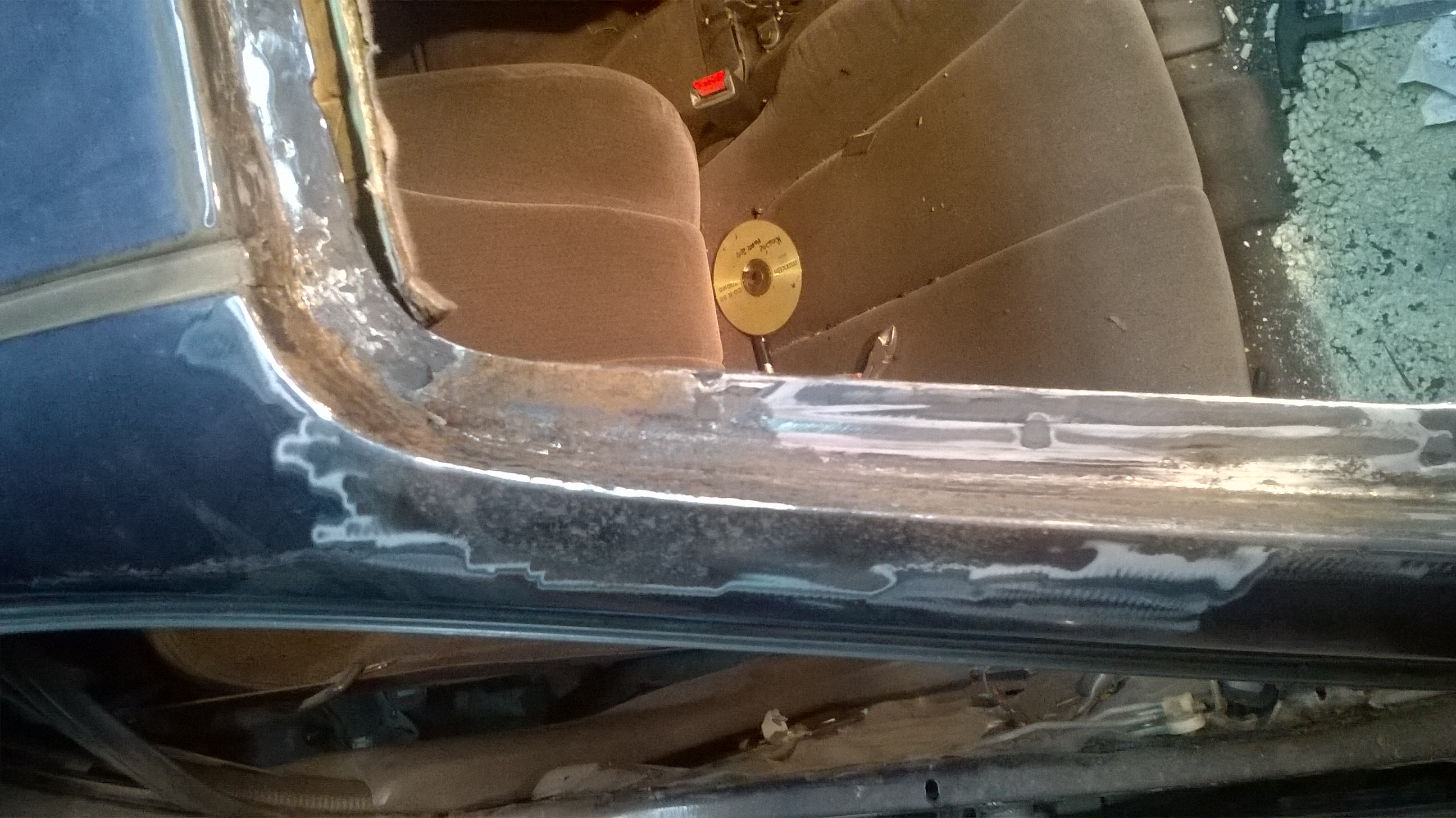 Dzisiaj dokończyłem próg, jest zamknięty i uszczelniony, wziąłem się też za słupki A, więc musiałem wybebeszyć podsufitkę oraz wykładzinę. Może je dzisiaj zacynuję jak nie dzisiaj to postaram się jutro.