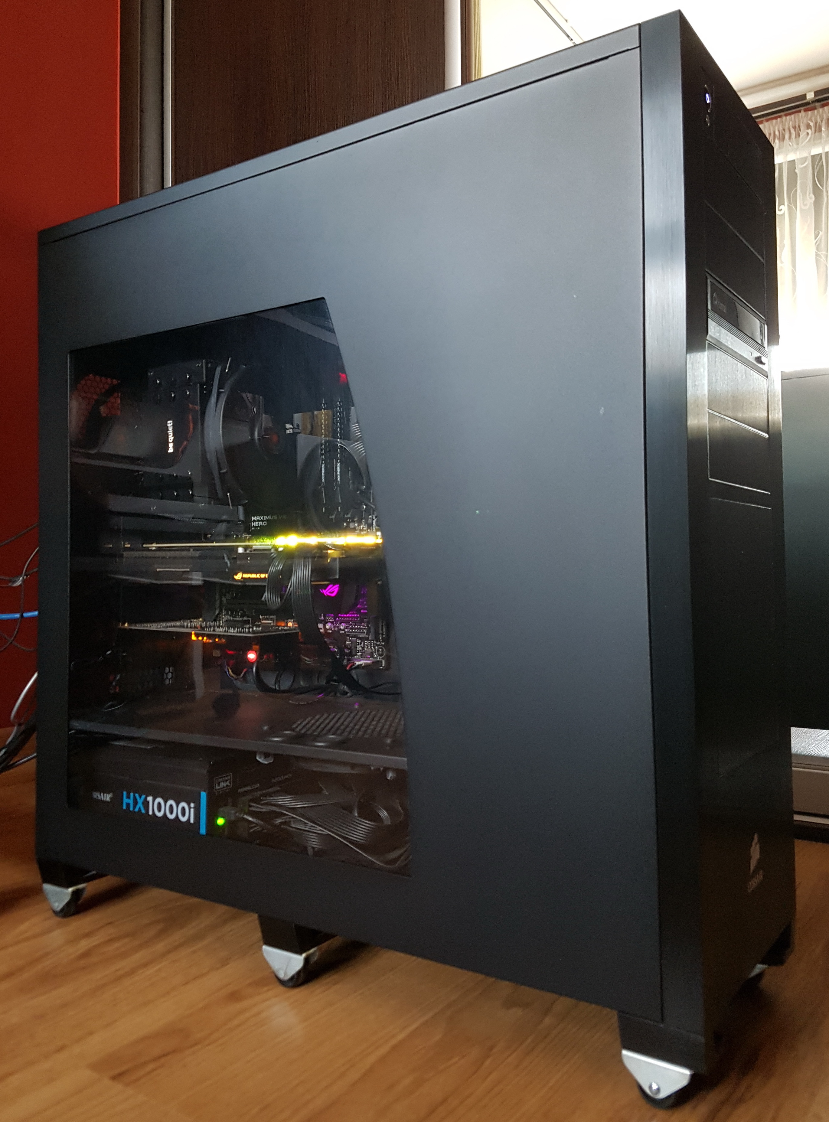 Najlepsze jest to, że przy grzebaniu w internetach i ogólnym spoczynku pracują 3 wentylatory 140 mm na 400-600 obrotów. Zasilacz stoi, karta stoi.