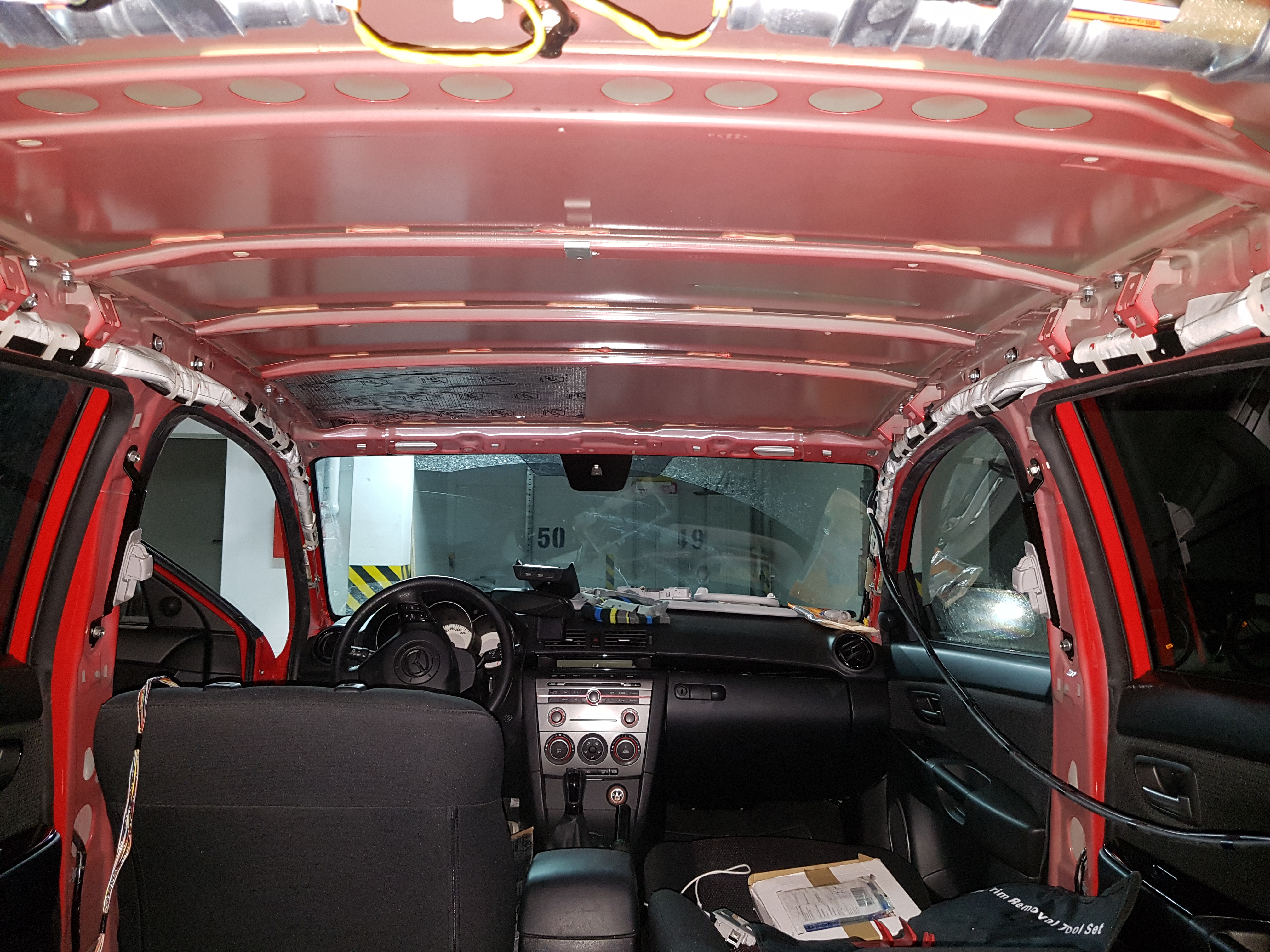 Niedługo zmienimy chyba miejsce zamieszkania i obawiam się o warunki w przyszłym garażu, więc "grube" tematy chciałem zrobić jeszcze tutaj. Miejsce jest na tyle mało uczęszczane, że wszystkie plastiki, kanapę i podsufitkę zostawiłem w garażu, "na kupie", jak poszedłem jeść kolację i nikt się do tego nie przyczepił, ani nic nie zginęło.