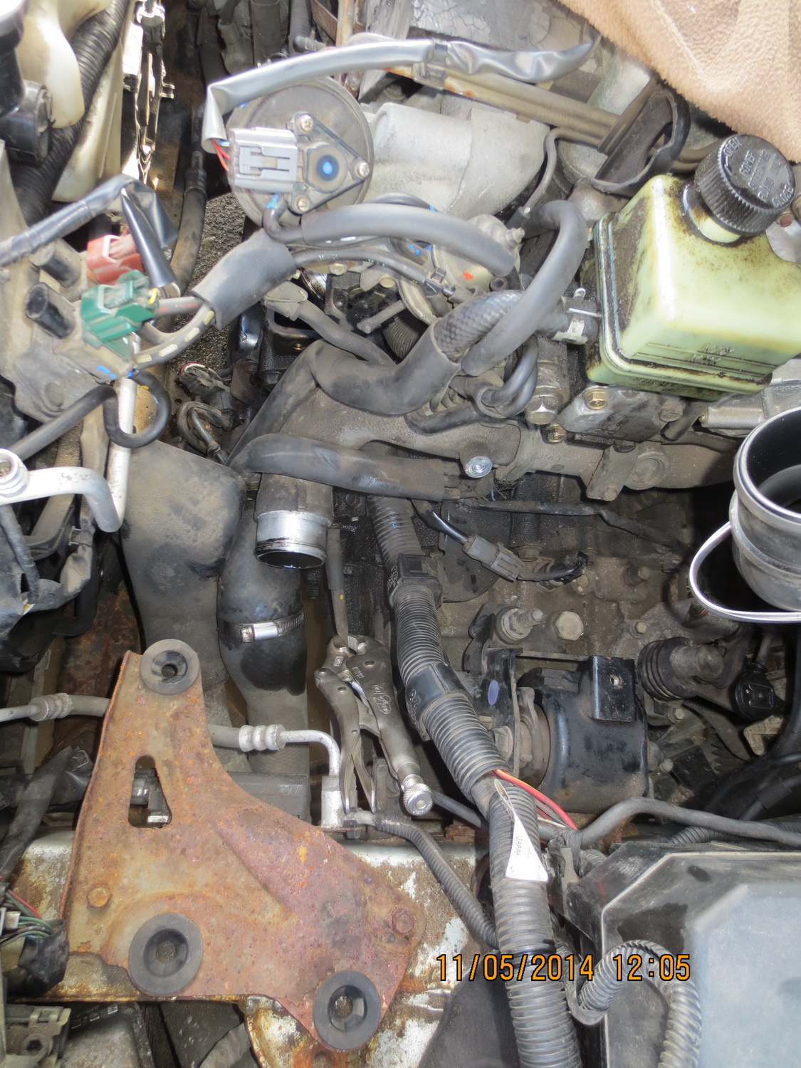 5. Odkręcamy 2śruby wysprzęglika razem ze spiralną rurką- klucz 12, (do jednej śruby będzie dobry dostęp do drugiej będzie trzeba ciut się pogimnastykować)