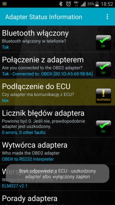 Stwierdziłem, że to kara za skąpienie paru złotych, więc kupiłem inny model OBD2, ale w tym jest to samo, łączy się z telefonem, ale z ECU nie.