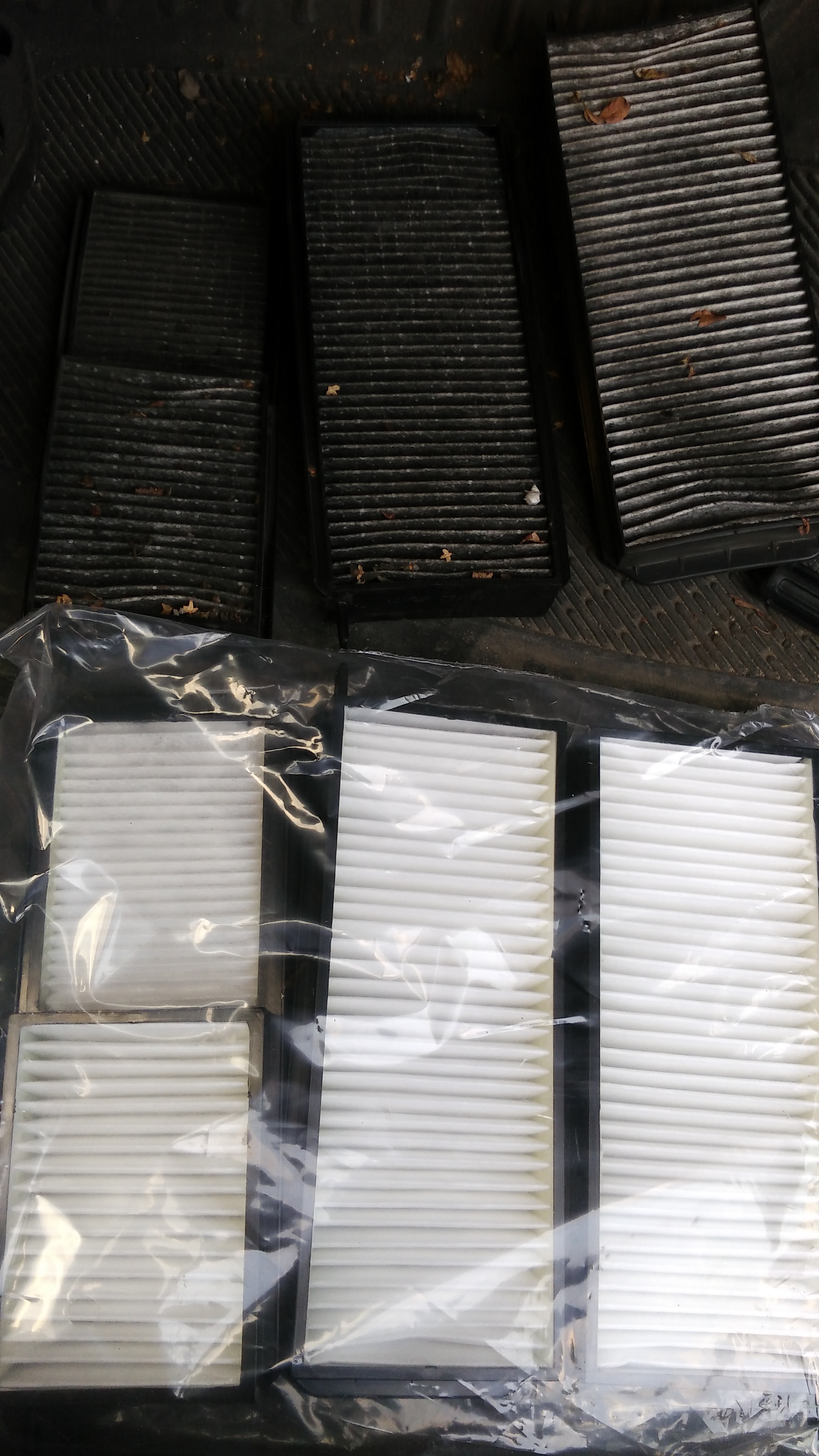 Spalanie mogło lekko wzrosnąć, ale może o 5%. Film z działania i podłączenia lamp pozycyjnych i zaślepienie EGR będzie wkrótce. Dziś dzień mocno dlubany – 3,5 godziny – wymiana łożyska koła, łącznika stabilizatora i sworznia zwrotnicy.. Na deser filtry kabinowe.. Widać różnice na foto.