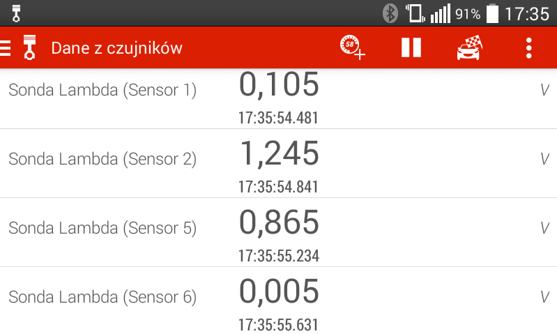 Na zdjęciach jest błąd i wskazania sond. Ale samochód mógł być nie do końca rozgrzany. A to chyba wpływa na sygnał. Teraz było ponad 1 V na sondzie nr 2 a wczoraj na trasie miałem prawie cały czas 0V tak jak pisałem wcześniej