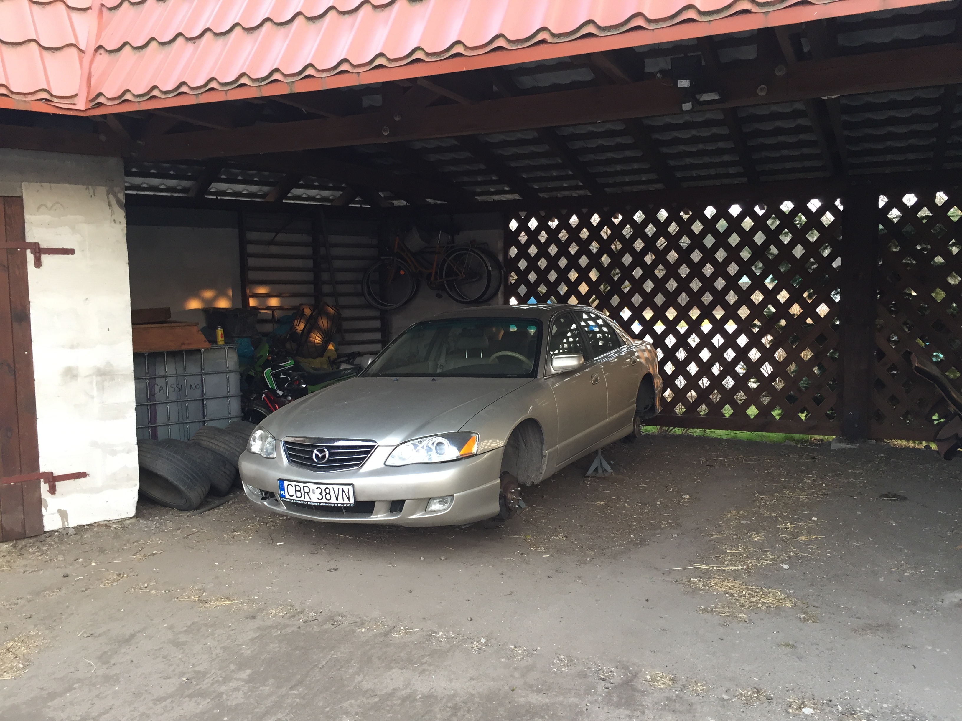 Wracamy po długiej przerwie. Samochód zimował niestety dużo pod chmurką i był używany okazyjnie. 2tys km w ciągu 2 lat. Jako że pogoda rozpieszcza i aż chce się pracować, ruszamy z zawieszeniem przednim. Millenia z "prawdopodobnie" małym przebiegiem strasznie "gnije" – jak to mają w zwyczaju. Zaczynamy od zawieszenia przód i trochę tył które jest bardziej skorodowane niż zużyte. Z tyłu wymieniamy tylko wahacze górne, reszta trzyma się kupy. Z przody pod naprawę idzie wszystko. Części na przód zamówiłem chyba z 5 różnych miejsc: