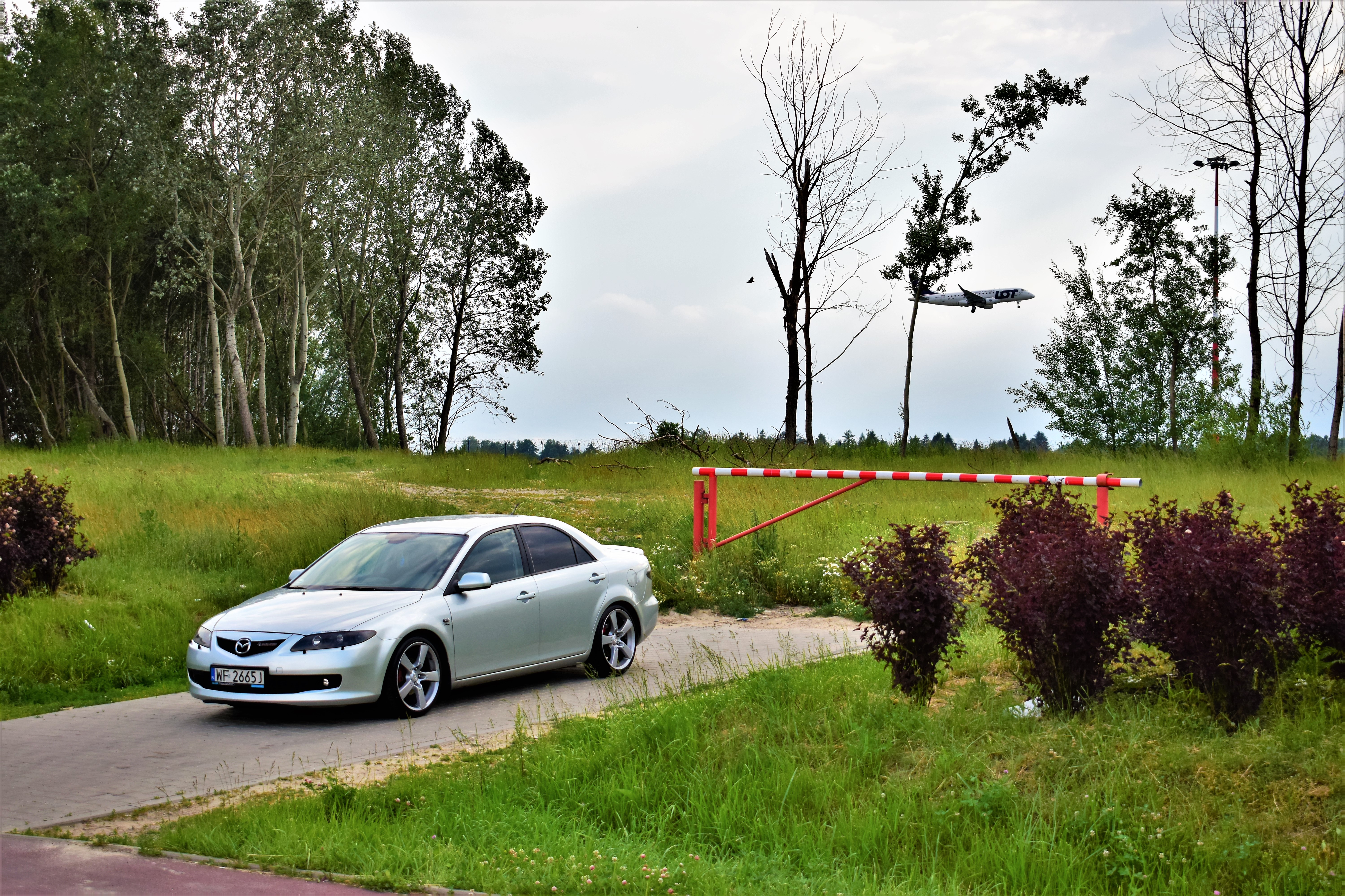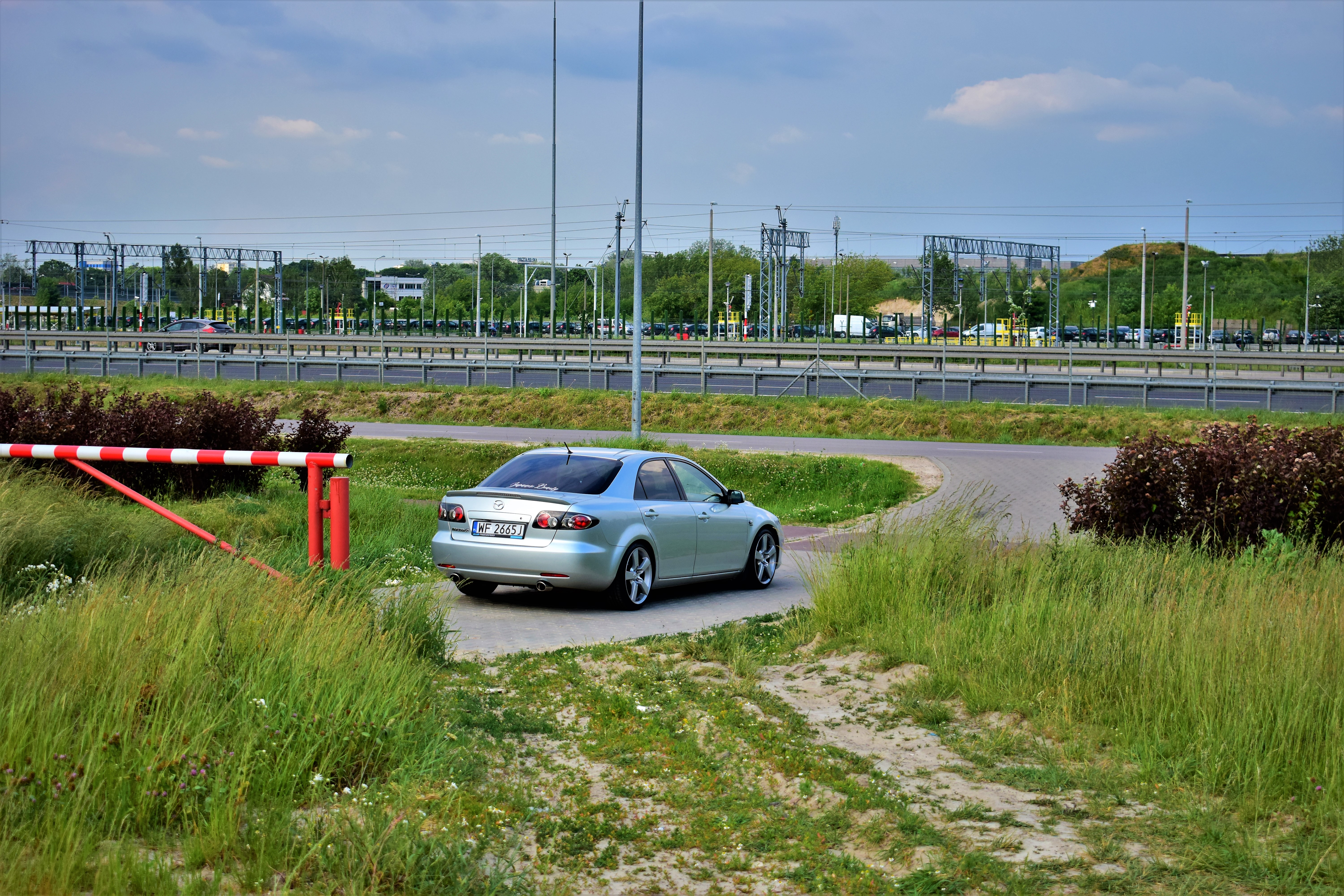 Nawet maszt prądowy wygląda jakby pozował z Mazdą.