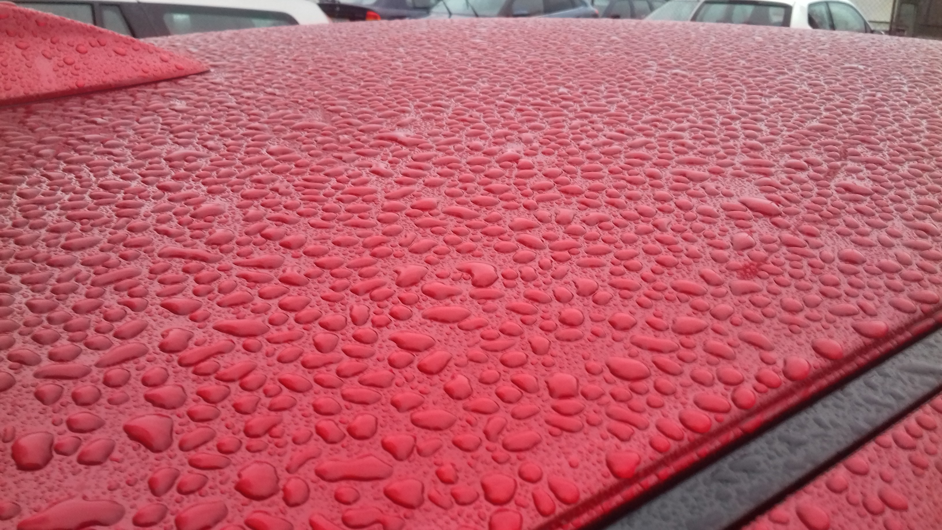 Chciałem Wam tylko pokazać, jak wygląda "kropelkowanie" po nałożeniu powłoki ceramicznej. Położono ją zaraz po zakupie samochodu, a więc osiem miesięcy temu, i od tamtej pory samochód jest tylko regularnie myty ręcznie.