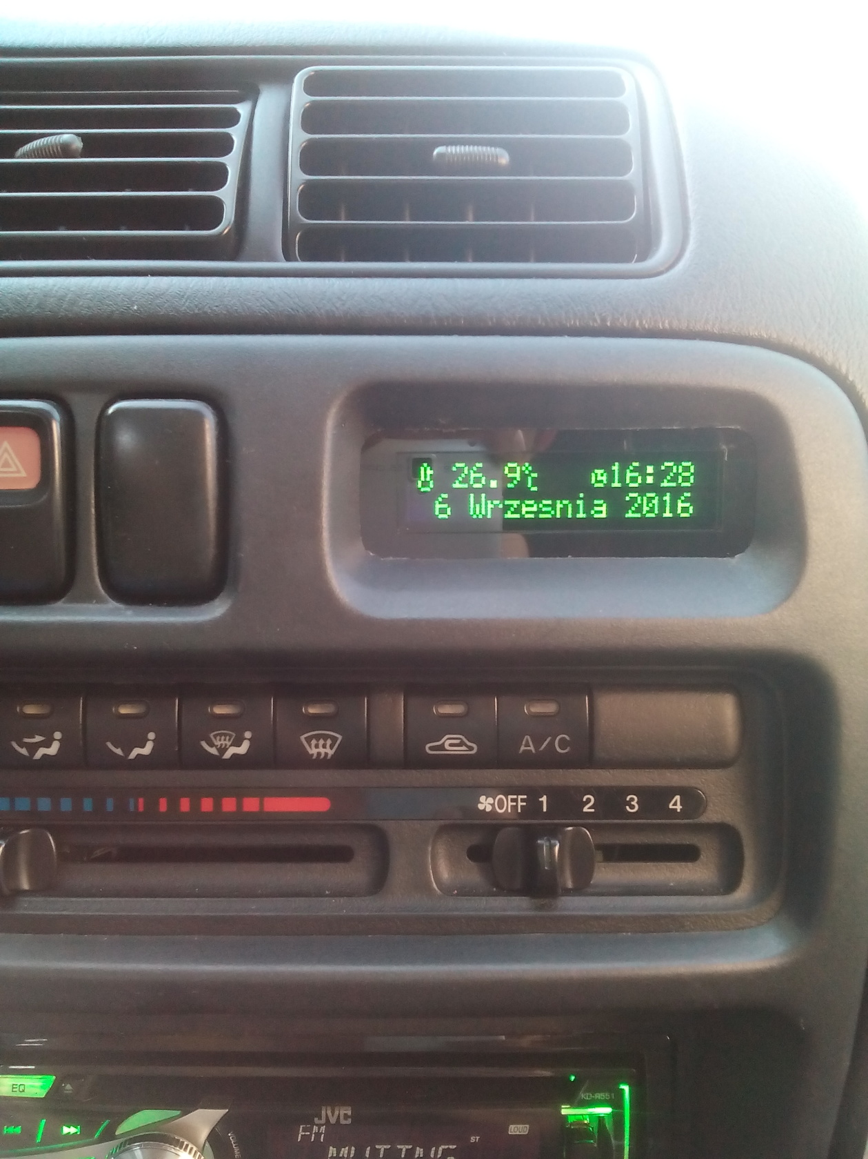 . Trochę rzeźby było aby go jakoś przymocować w miejsce fabrycznego zegarka. Za kompa dałem coś koło 140zł. Jego płytkę mam wrzuconą za panelem konsoli środkowej. Musiałem się połączyć ją z kilkoma kablami – od zegarka, od ecu ( jest pod miejscem na kubki więc trzeba rozebrać tunel środkowy) i jeden od licznika.Jeśli wystarczy Ci tylko godzina, data i temperatura to będzie taniej i prosto bo wepniesz się kablami tylko w kostke od zegarka.