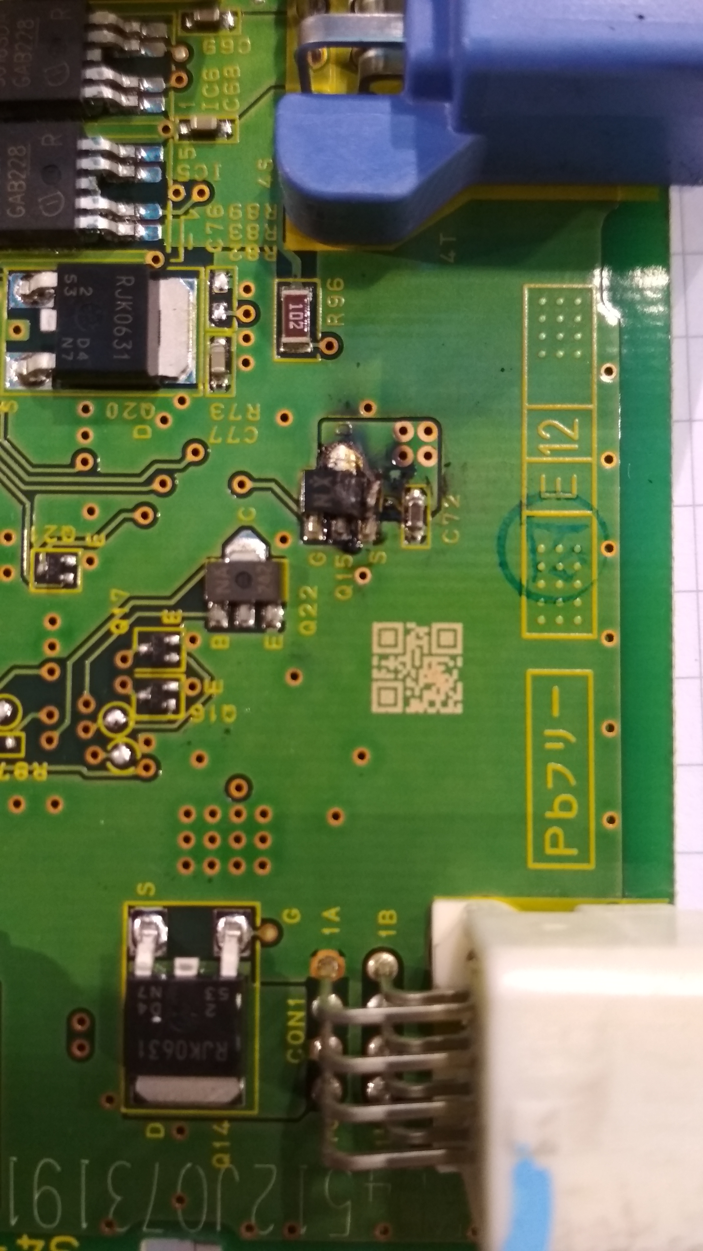 No to nieźle grzmotnęło, że taki tranzystor usmażyło. Jak widać część kodu elementu jest nieczytelna co znacznie utrudnia identyfikację elementu.