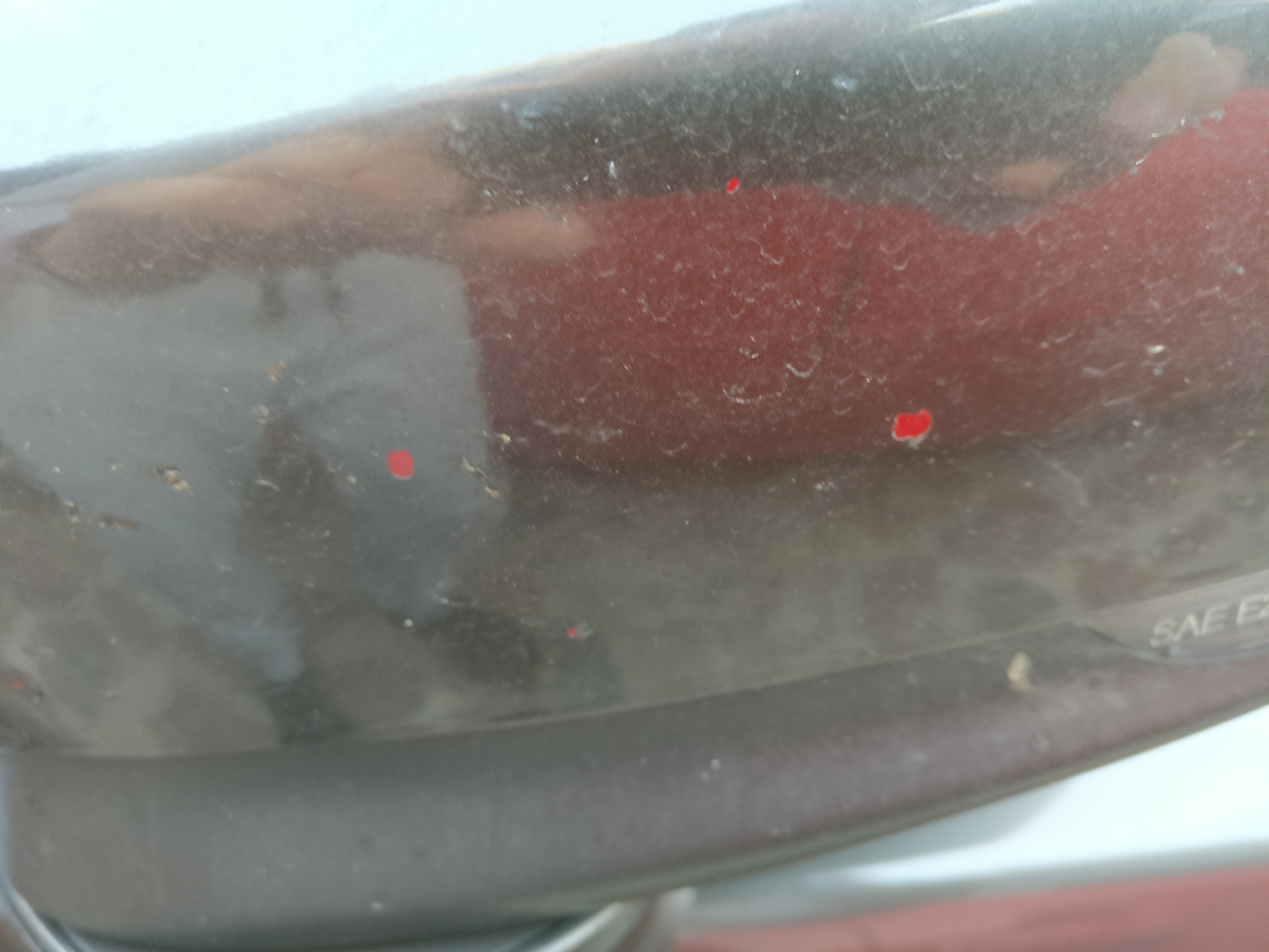 Pytanie drugie to czy to lusterko nie było czasem lakierowane. Dla mnie wygląda jakby było wzięte czerwone i pomalowane na szaro i teraz szary zaczyna odchodzić.