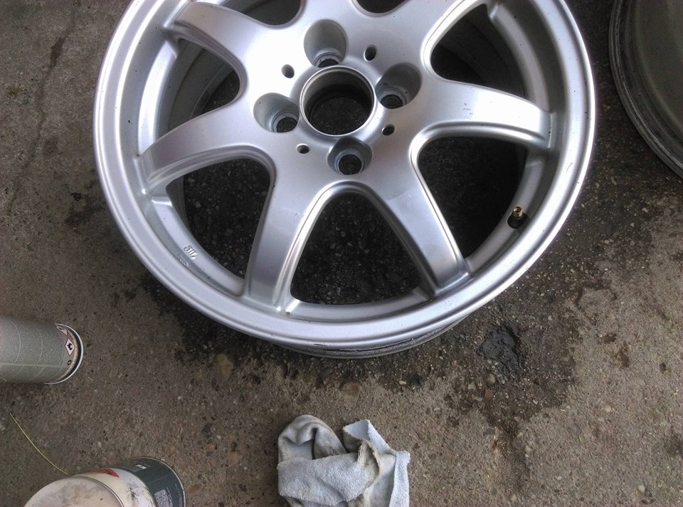 Dzisiaj Piotrek zrobił próbę lakieru na felgi...