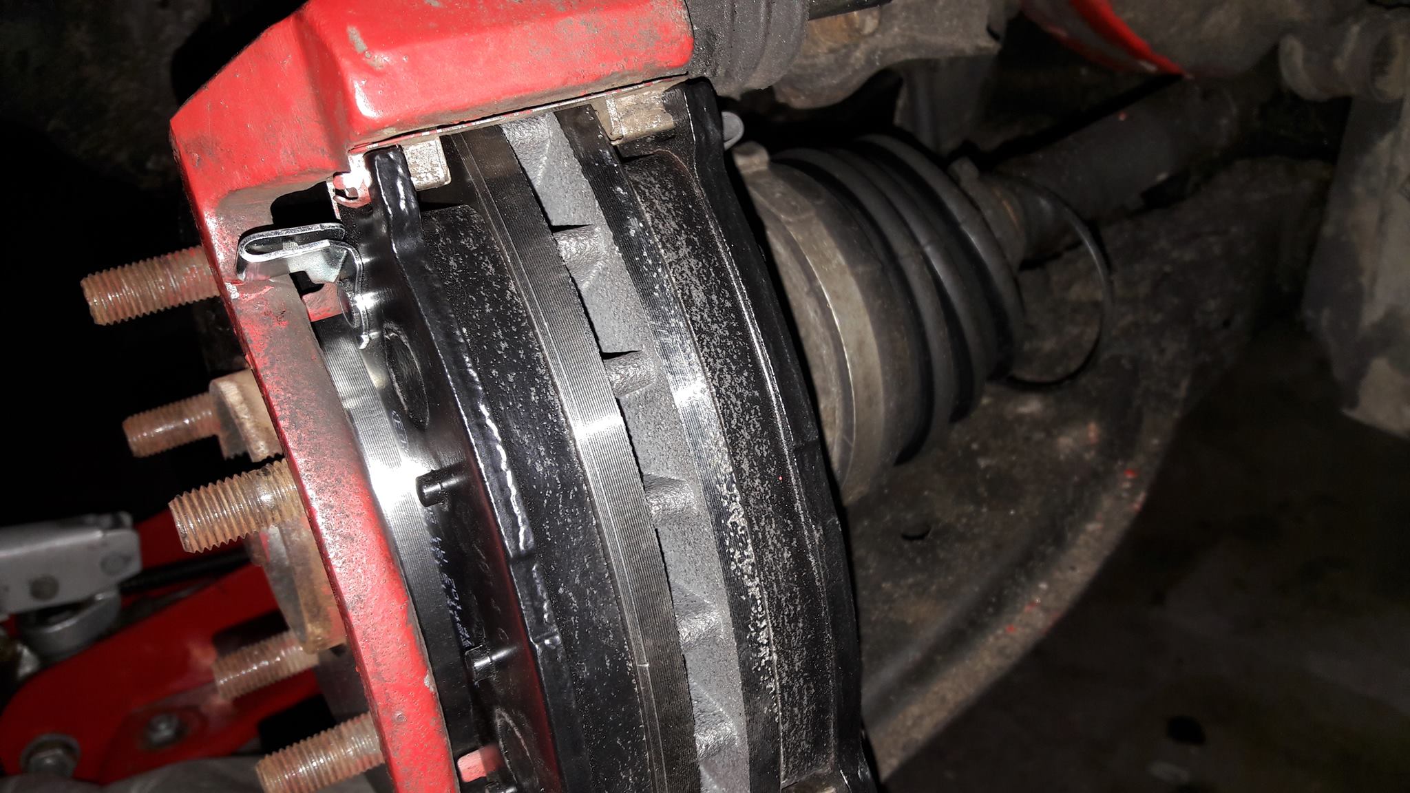 Ostatnio po zmianie amorów w GE chmiela_KL na garaż wjechałem swoją srebrną strzałą, tym razem wziąłem się za heble, mega krzywe tarcze i bardzo nierówno ścięte klocki wprawiały auto w drgania przy hamowaniu, nie wspominając już o prędkościach autostradowych :| starym stuffen były klocki firmy TOMEX i niewiadomego pochodzenia tarcze, teraz są tarcze ABS (all brake system) i klocki breck <spoko>