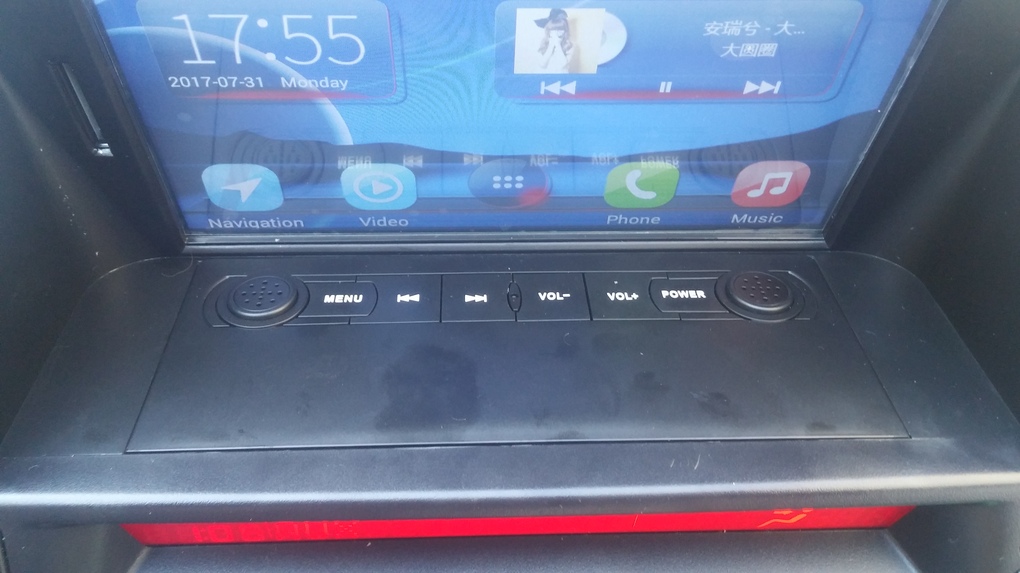 *Przyciski fizyczne faktycznie słabo widać ale ogóle ich nie używam. Mamy tam głośność , muzyka przód , muzyka tył , menu i power. Głośność i przewijanie obsługują przyciski w kierownicy. Power działa po stacyjce a menu to chyba nawet nie próbowałem.