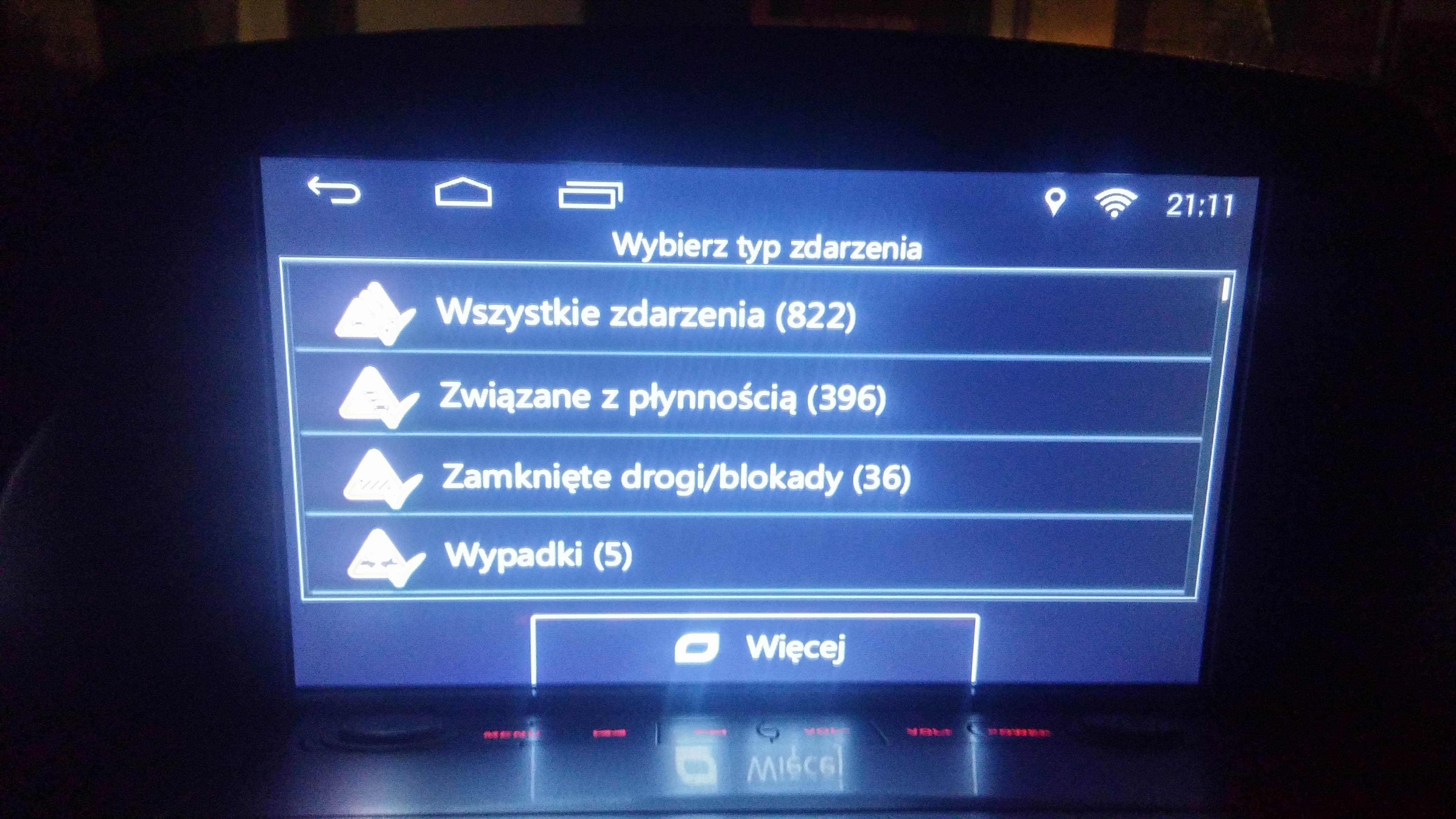 Nawigacja ma ciekawą opcję gdy mamy podłączenie z internetem. T.z opcję omijania zdarzeń na drodze.