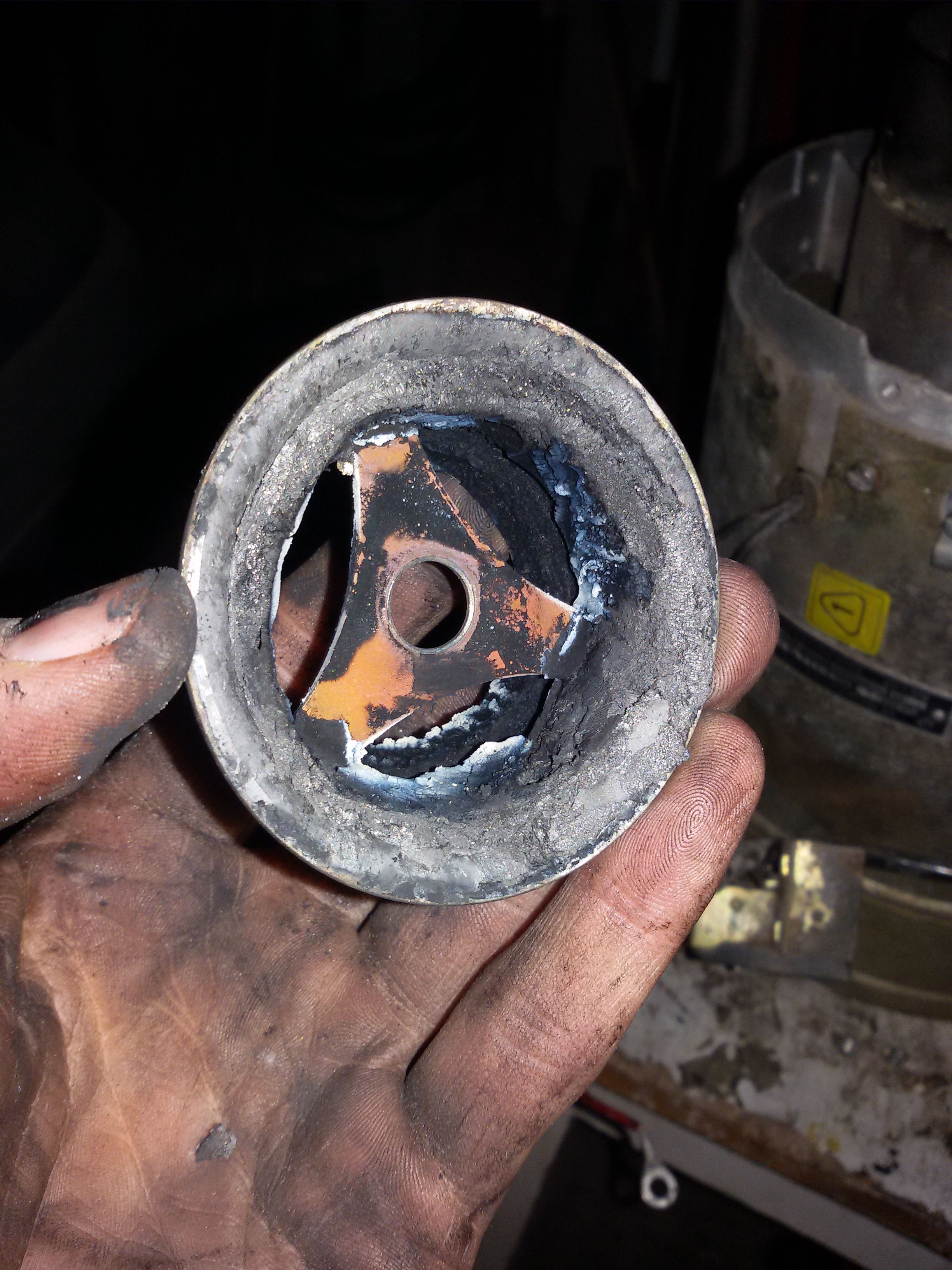 Postanowiłem podzielić się fotografią jak wygląda palnik już zdemontowany i częściowo oczyszczony a raczej obkuty. Dewasto pracuje u mnie na oleju napędowym + olej silnikowy 1:1 W taki sposób spaliłem jak na razie 20l silnikowego i dużo więcej napędowego.