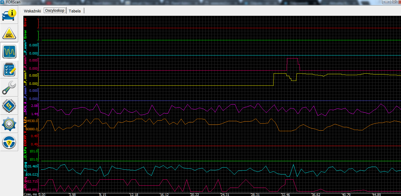 Trzeba pamiętać, że pierwszych 12 PID-ów można oglądać pod zakładką Oscyloskop w postaci oscylogramu, co jest bardzo pomocne w analizie.