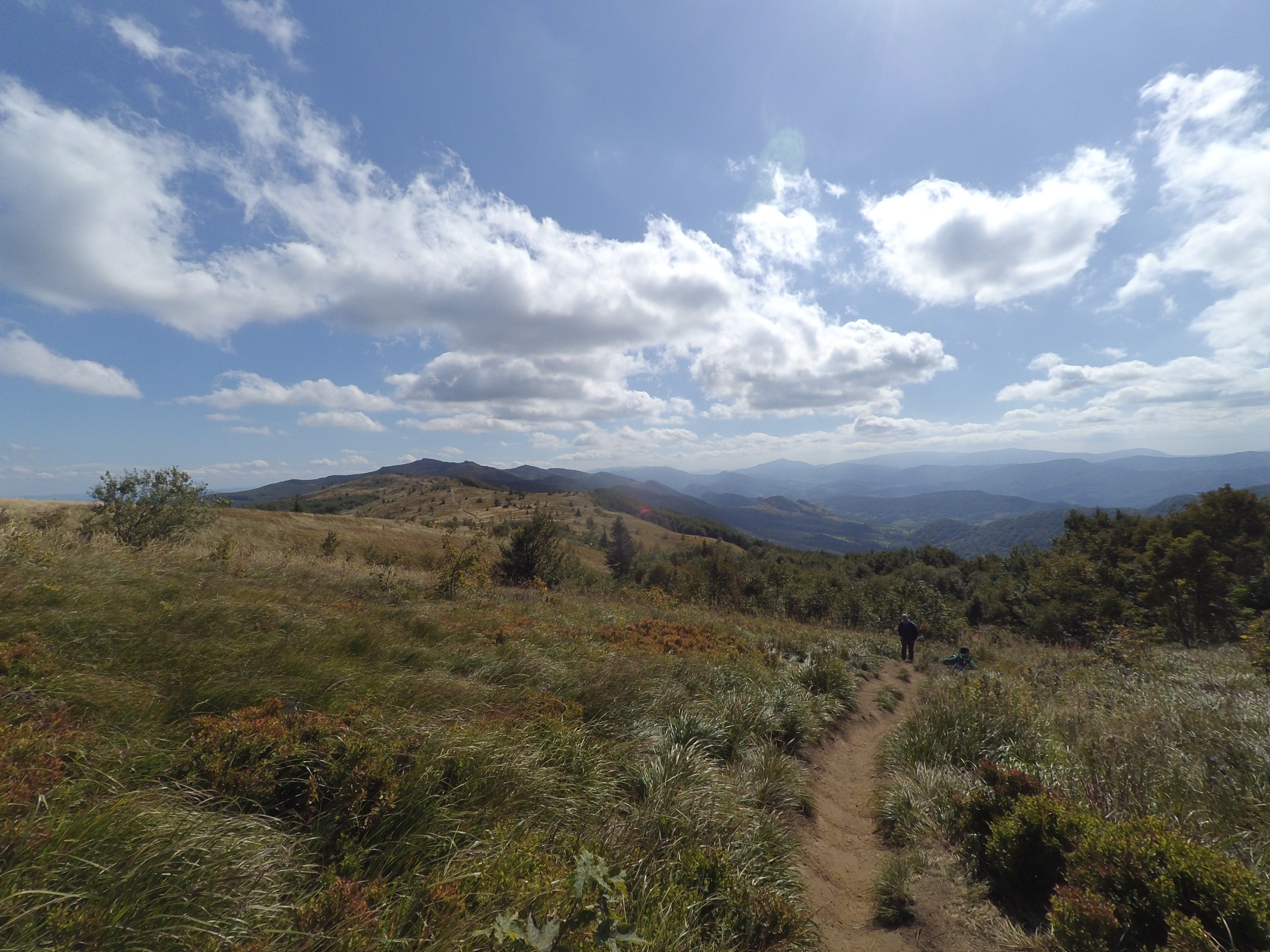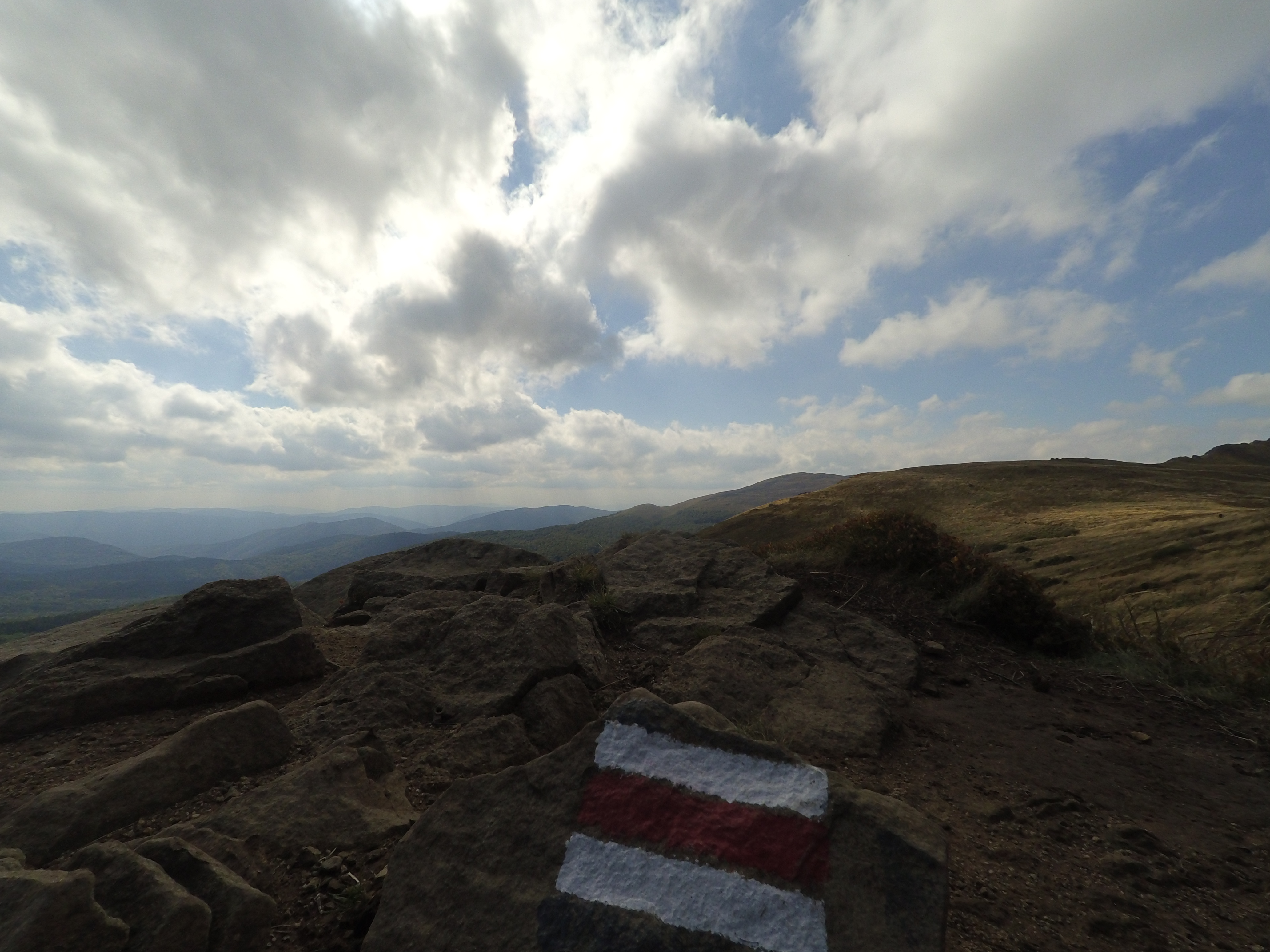 Z dzisiejszej wycieczki po Bieszczadach. Trasa ma niecale 20km. Z wioski Wołosate czerwonym szlakiem na Halicz, potem przełęcz pod Tarnicą, żółtym szlakiem na Tarnice i z powrotem na przełęcz. Dalej niebieskim szlakiem do Wołosatego. Mega widoki.