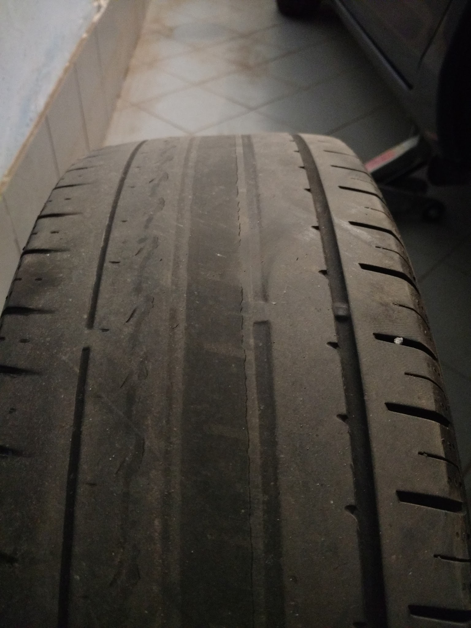 Pozostałe mają dobry stan bieżnika (4-5mm), niestety to występuje tylko po tej stronie. Potwierdziłem to też na komplecie zimowych kół, jednak wcześniej nie przyszło mi do głowy że tylko to jedno koło jest tak zużyte. Myślałem że cały komplet jest do wymany z powodu wieku.