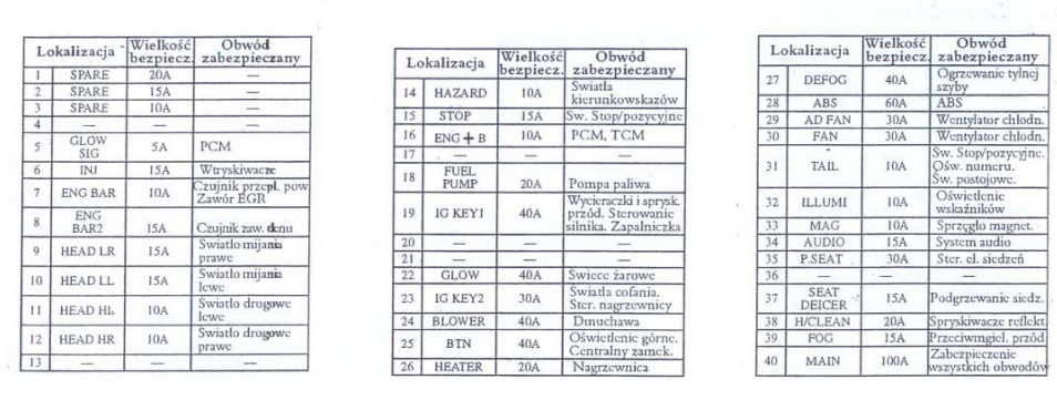 U mnie pod maską bezpiecznik w pozycji 15 odpowiada za światła stop i klakson. Jest to bezpiecznik 20A.