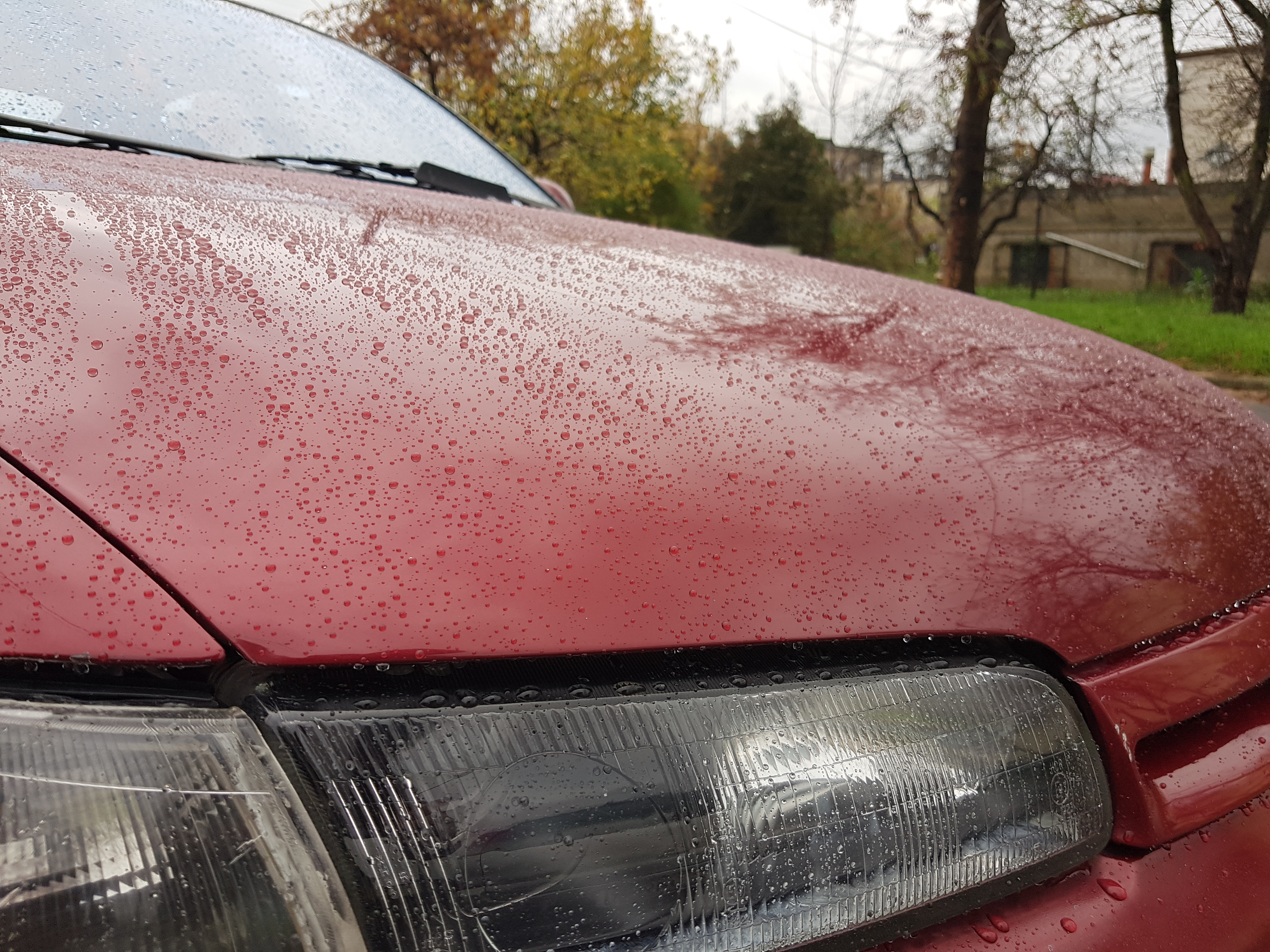 Wosk na aucie, szczerze się przyznam że zużyłem chyba go trochę za dużo albo ta puszka jest taka mała bo dobiłem się leciutko do dna <czarodziej> hahaha Ale co tam jak jest to się nie oszczędza ważne żeby efekt był :D A efekt moim zdaniem jest znakomity <serduszka> Wiadomo znajdą się koneserzy itd którzy stwierdzą, że jest... średnio <oczy> Ale na mnie robi wrażenie i oby tylko utrzymywał się jak najdłużej, z tego co czytałem do 3 miesięcy daję rade chociaż na pudełku mowa o 12 hahaha Właśnie wybrałem sobie nie najcieplejszy dzień bo wiem, że wosku na ciepło się nie nakłada ale niestety robiłem to po przyjeździe z pracy więc ciepło od silnika minimalnie jeszcze trzymało maskę i trzymałem tam krócej wosk myśląc, że będzie ok niestety nie do końca było ok bo jak się przyjrzeć to są smugi no ale trudno :P Filmiku w sumie nie nagrałem, zapomniałem o tym może coś nagram :) Nie wiem co w tym fajnego ale jak jadę w deszczu lub po i takie małe kropelki latają mi po masce to się jaram jak szczerbaty na paczkę sucharków <czarodziej> No i popełniłem kolosalny błąd którego żałuje :( Pomyślałem sobie, że jak to wosk to może nałożę go delikatnie również na szyby i też będzie ładnie spływać? Niestety to tak nie działa w sumie nie wiem czemu, może ktoś mądrzejszy mi wytłumaczy <co?> Może kropelki delikatnie lepiej spływają ale to jakie są smugi w słońcu to masakra i jak się przeciera wycieraczkami szyby to też taki sam efekt także nie polecam :( spróbuje jeszcze je umyć dokładnie może to coś da :P