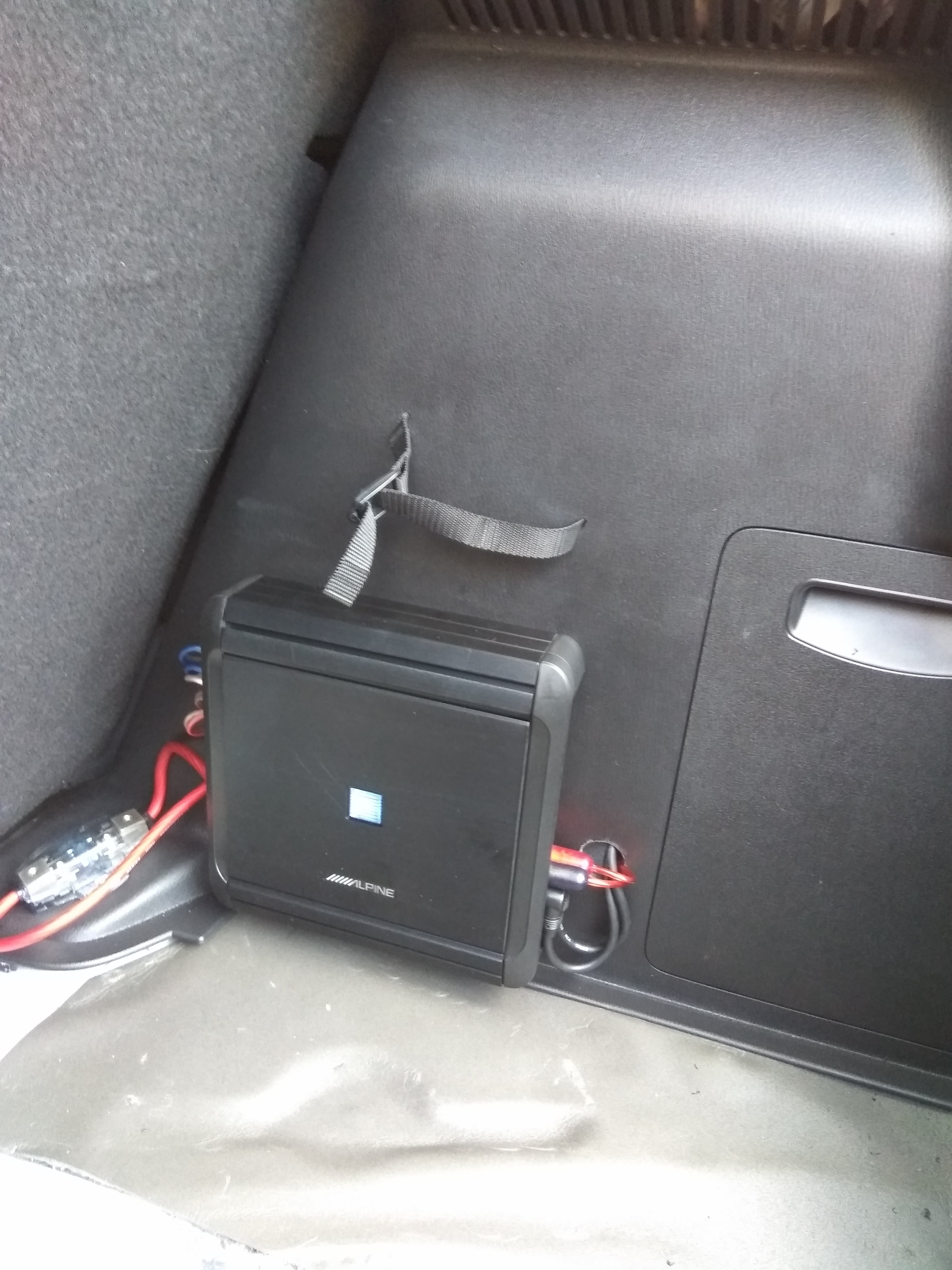2. Masa do wzmacniacza jest na jakimś małym, nieużywanym bolcu pod fotelem na który nakręciłem nakrętkę. Niestety "oczko" masy było za małe na jakąkolwiek inną śrubę w okolicy.