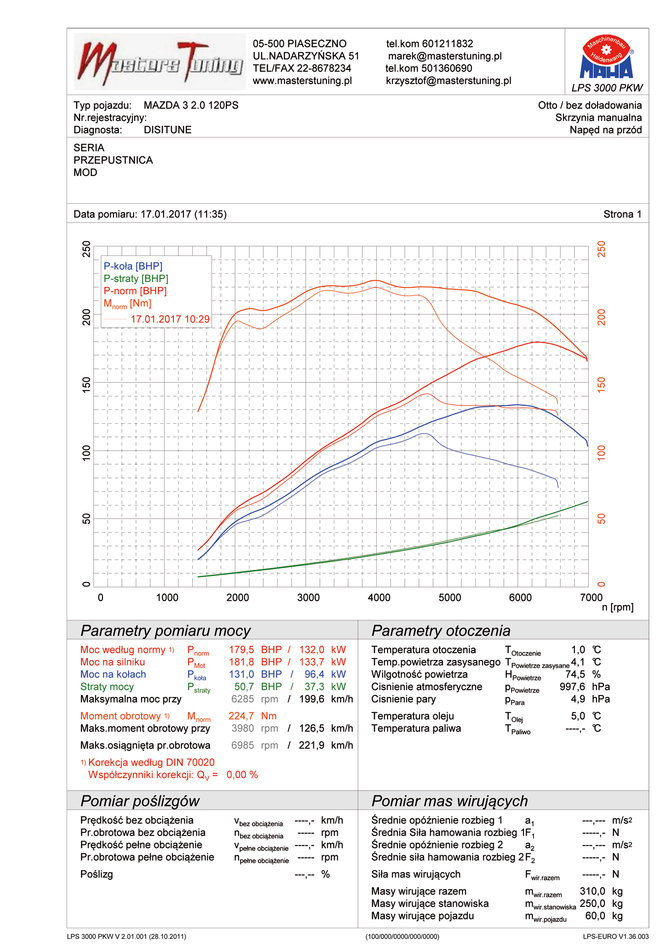 Na wykresach (2) widać że krzywa momentu obrotowego jest bardzo podobna do krzywej momentu obrotowego dla Mazdy 3 120KM po remapie silnika.