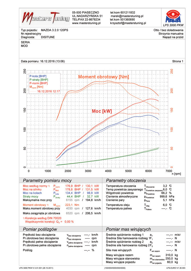 Na wykresach (2) widać że krzywa momentu obrotowego jest bardzo podobna do krzywej momentu obrotowego dla Mazdy 3 120KM po remapie silnika.