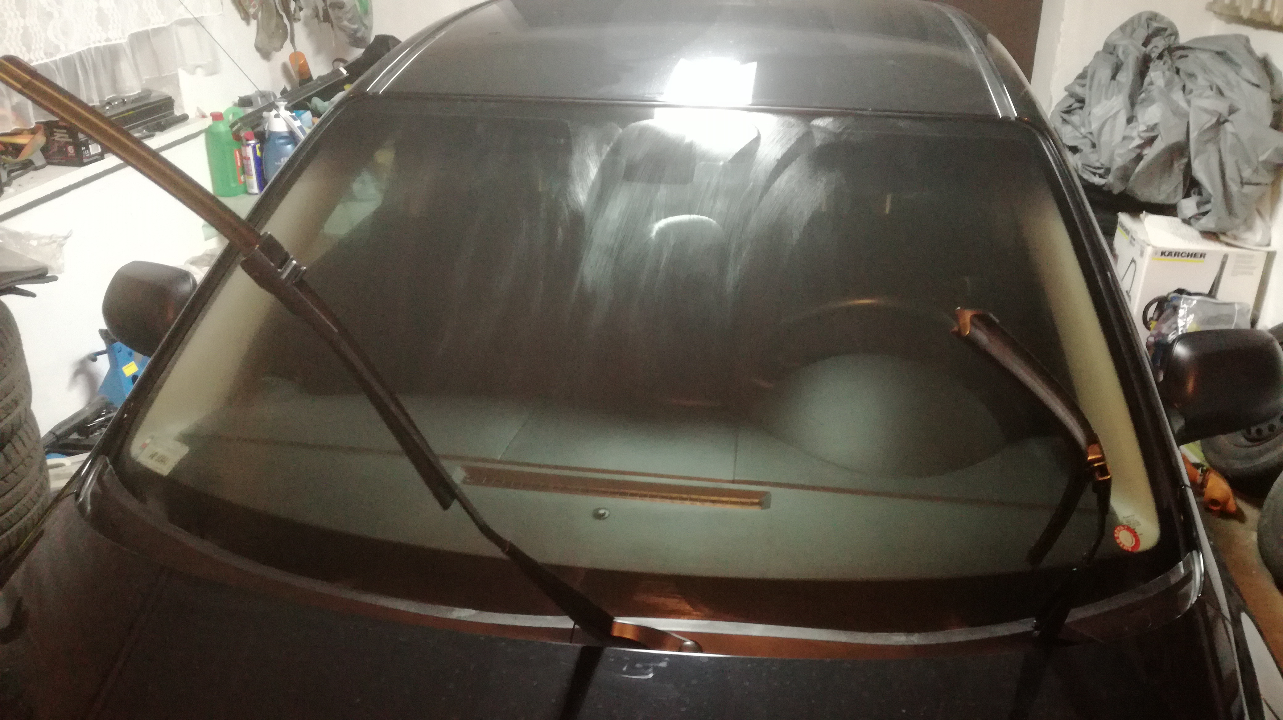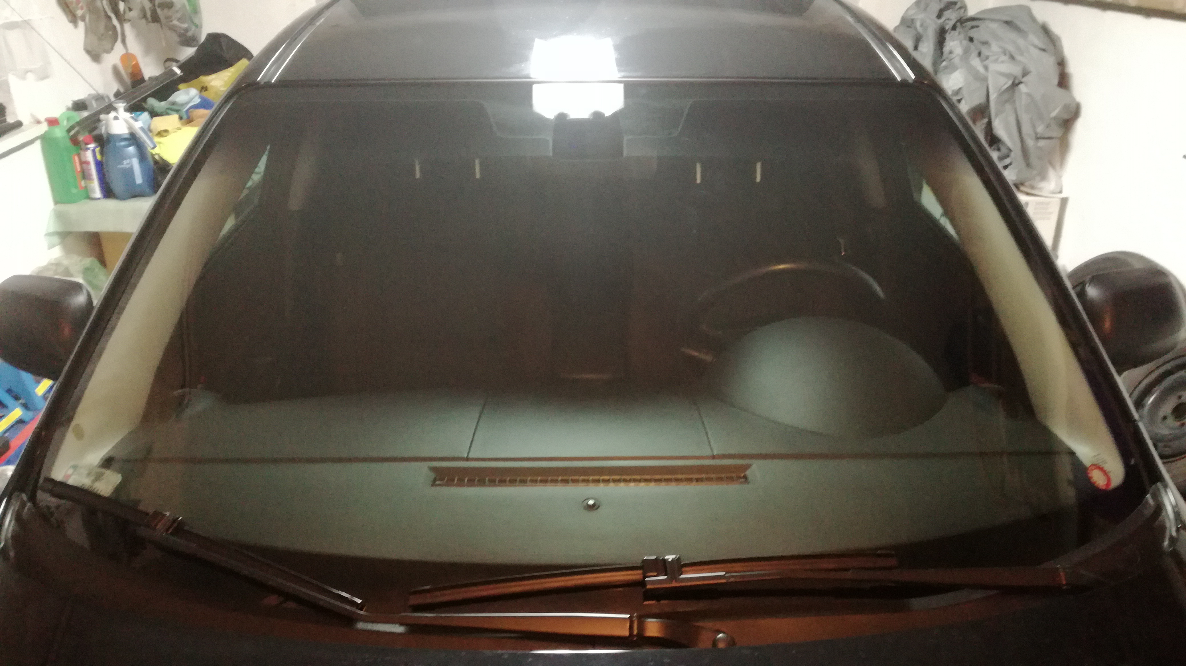 W poniedziałek rozstałem się z Mazdą na lekko ponad 24h celem wymiany szyby w Jan Auto Szyby Płock. Tak jak wspominałem, padło na Pilkington. Jako że nie było z fabrycznym ściemniającym pasem, poprosiłem o naklejenie specjalnego pasa z folii (zabawa kosztowała mnie 100zł). Pas jest bardzo fajny z tego względu że jest cieniowany (ciemno na górze, jaśniej na dole), jednak nie wiem czy w przyszłości go nie zerwę ze względu na kreskę na końcu pasa, bo to jednak folia, a dwa – folia jak to folia, widać ryski co denerwuje na szybie bez jakichkolwiek defektów (przynajmniej póki co). Do tego od razu wpadły nowe wycieraczki, jakimi są płaskie oximo. Jeszcze nie testowałem, więc nie wiem jak się będą zachowywać. Wczoraj wieczorem na szybę nałożyłem FK 1000p i myślę że będzie się spisywać lepiej niż niewidzialna wycieraczka