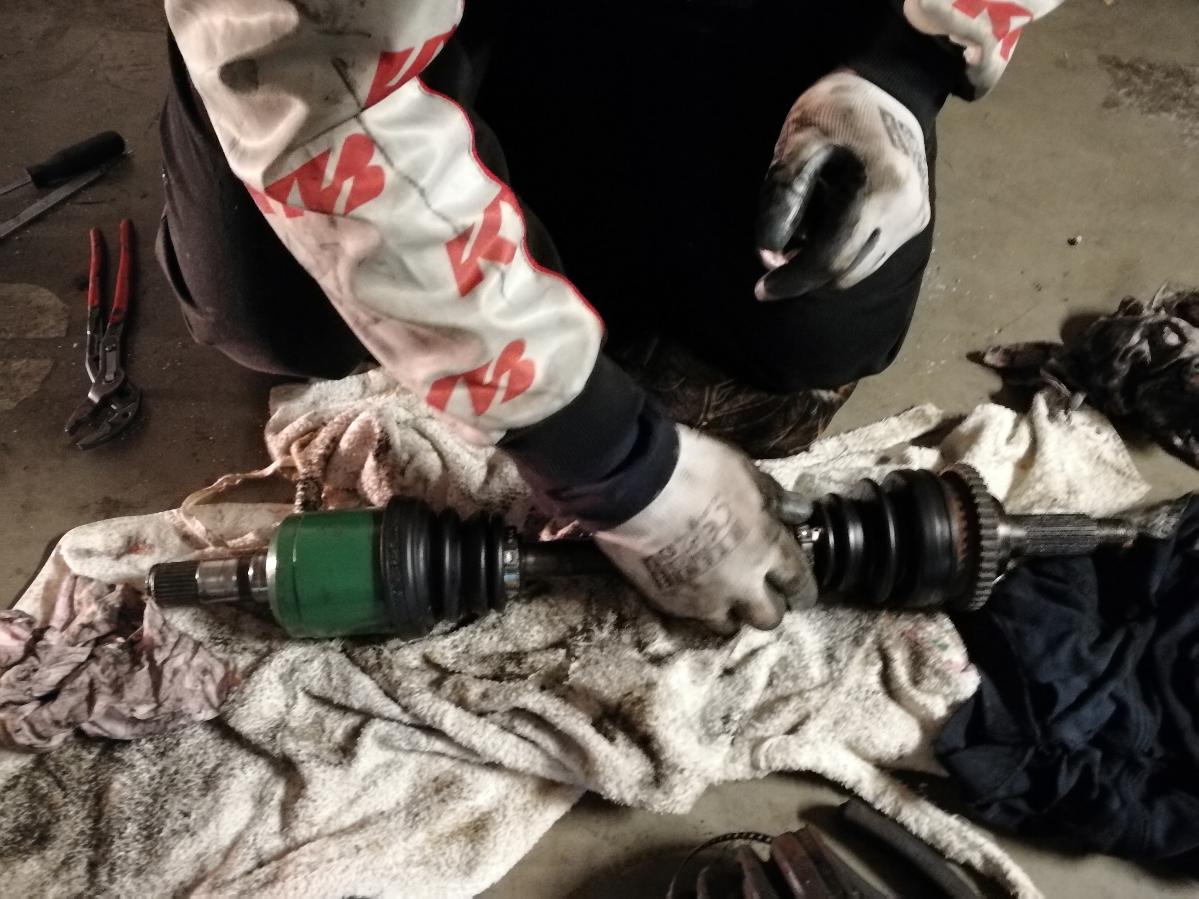 Czas świątecznych porządków udzielił się również w garażu. Wymiana gumowych osłon na przegubach z obu stron i na lewej półosi, wymiana łożyska koła pasowego oraz czyszczenie i nawilżanie stożka.