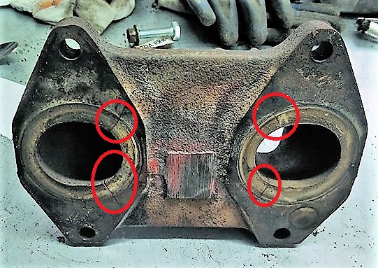 Bym zapomniał. Podczas rozbierania silnika wyszło na to, że pęknięty jest kolektor wydechowy. Pęknięty w tylu miejscach, że naprawa jest trudna, wymagająca, mało kto coś takiego potrafi. Zwróćcie też uwagę na kolor tego kolektora. Na coś wskazuje?
