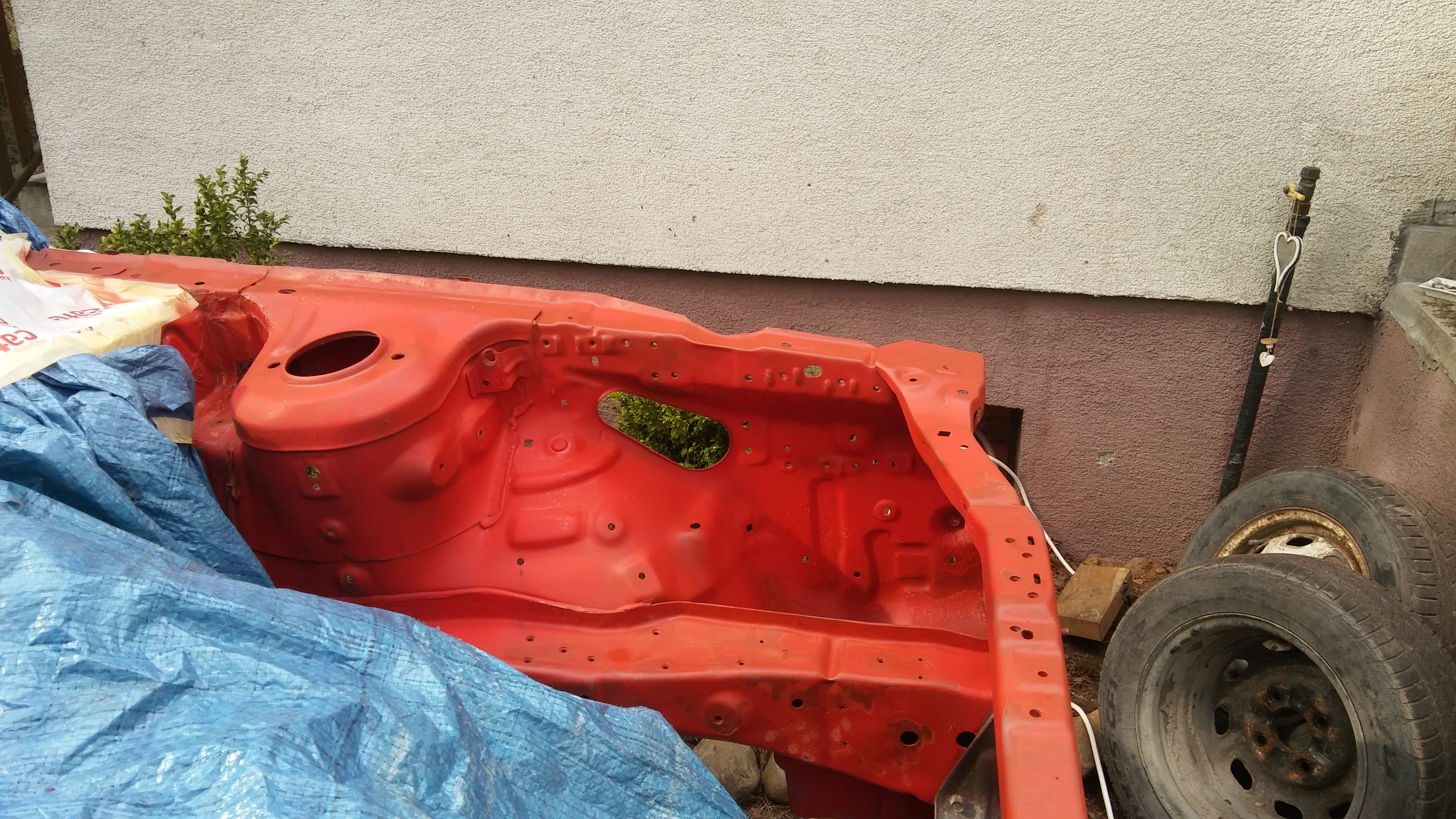 Przod oszlifowany nowe uszczelnienia na laczeniu blach potem podklad reaktywny epoksyd i jakis czerwony lakier co stal na polce...(i wiem ze lakierowanie komory z piecem itp to nie wyjdzie idealnie) ale lepsze to niz dziury i rdza....