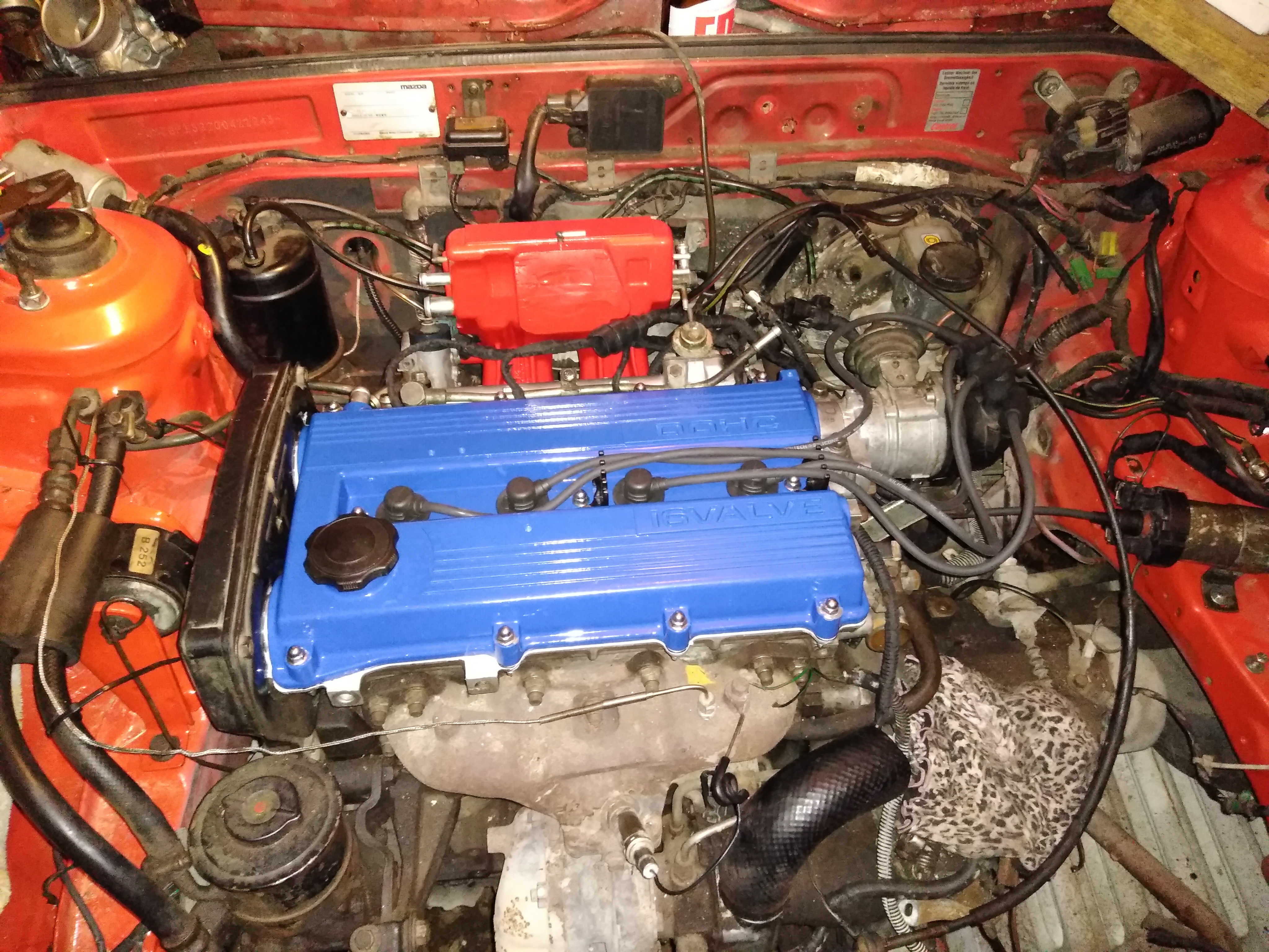 Znów wolne 3 godzinki dla Mazdy i kolektor i ciut węży podpiętych cewka opla i kondensator ( nie wiem jak i czemu ale chodzi i nie ruszam puki nie trzeba ) Aku polecial w bagażnik.