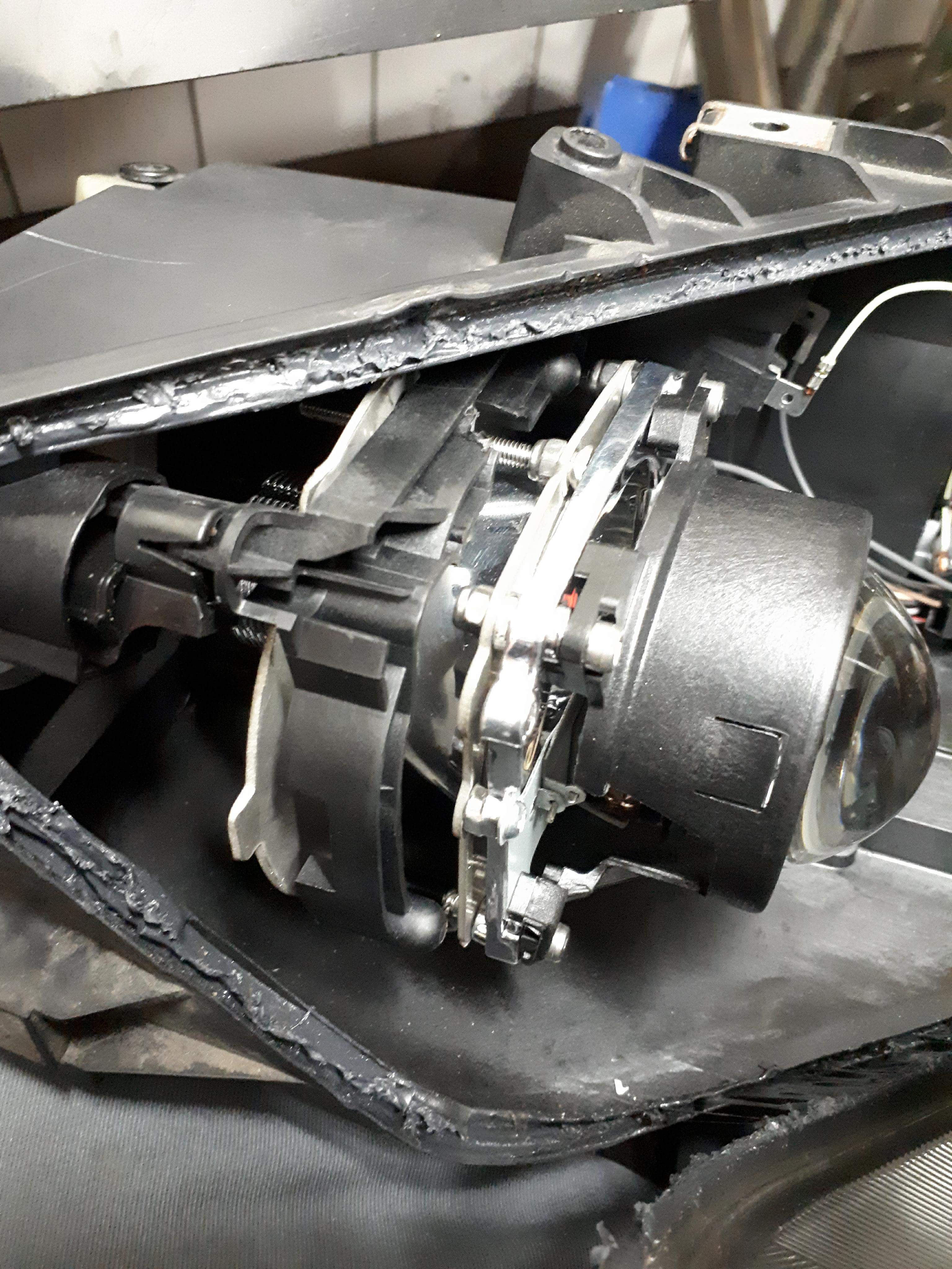 Wymiana soczewek na bixenon. Operacja wymagała troszke inwencji twórczej i pomocy znajomego który ładnie wyciął adaptery pod nowe soczewy, dodatkowo wymienione żarniki na Hella 4300k D2S. Poniżej foto :