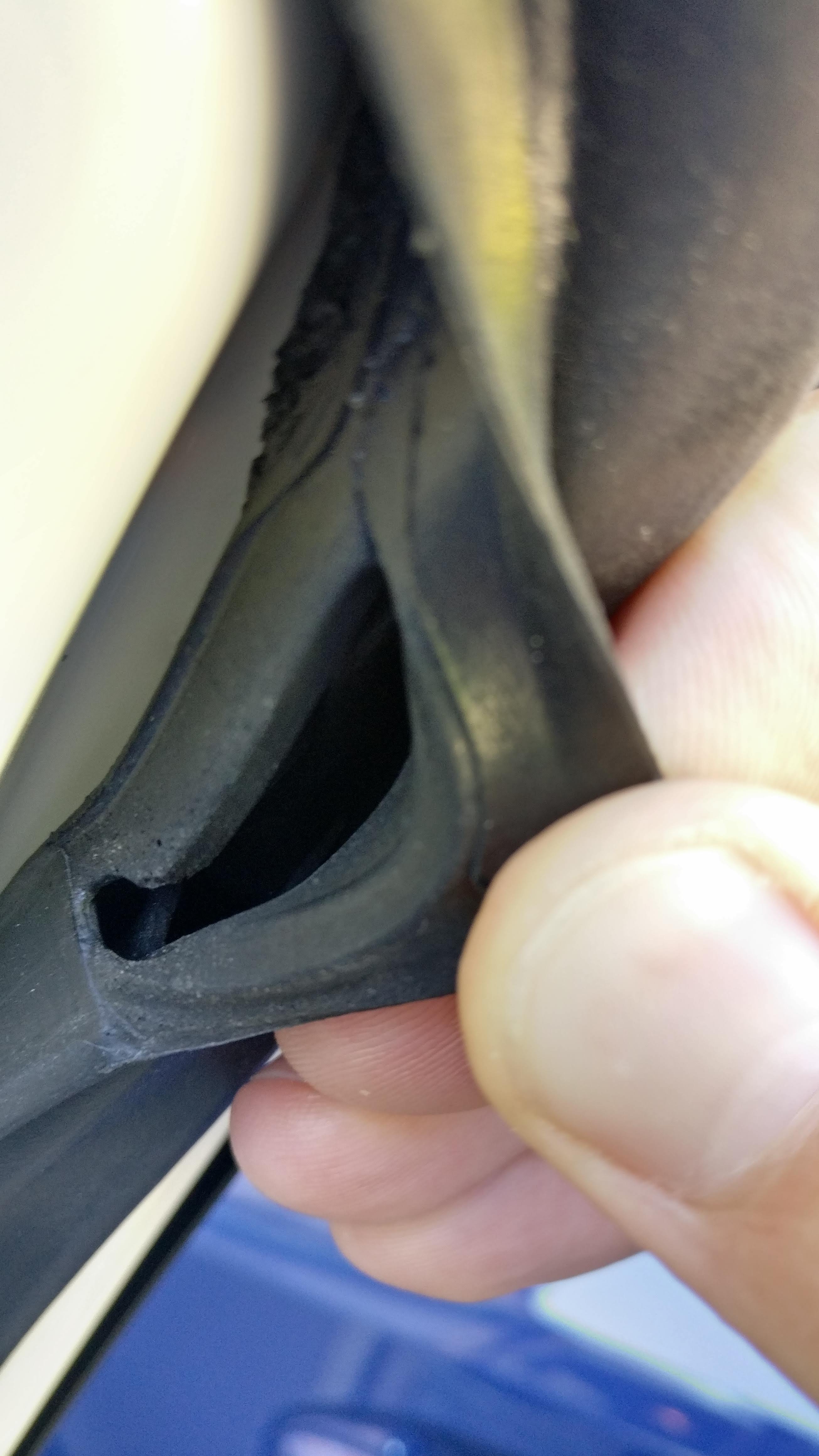 Nie, mówiąc o dziurze w uszczelce miałem na myśli to co jest na zdjęciu poniżej. Oprócz tego ze uszczelniłem tą cześc przy plastiku, to jeszcze uzyłem taśmy do uszczelek tak jak na 2 zdjęciu, i w sumie to oprócz tego ze słychać wiatr to tła ( tego co wiało wcześniej – opisywanego jako efekt uchylonej szyby ) już nie ma – słyszę tylko wiatr ( powiewy ) oraz mijające samochody – a to juz nie do przeskoczenia. Dla mnie gdzieś tam musiał być przewiew bo kierując głowę ( a właściwie ucho ) do górnej krawędzi drzwi, słyszałem cały czas szumiące powietrze – cicho bo cicho – ale jednak. teraz już tego nie ma.