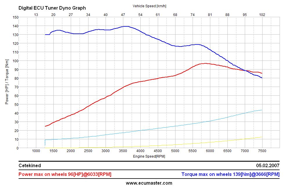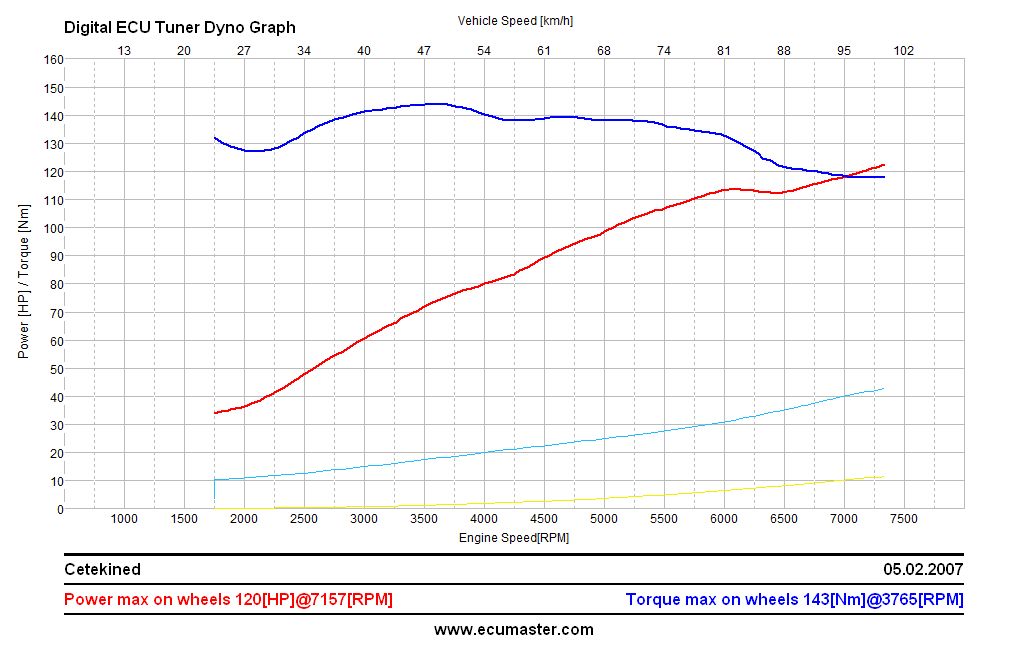 Pomiar w tym samym miejscu, w tych samych warunkach co poprzednio, więc jest w pewnym zbliżeniu wiarygodny. Plecy też mi mówią że przestaje mulić od 6500 rpm tylko ciągnie do końca.