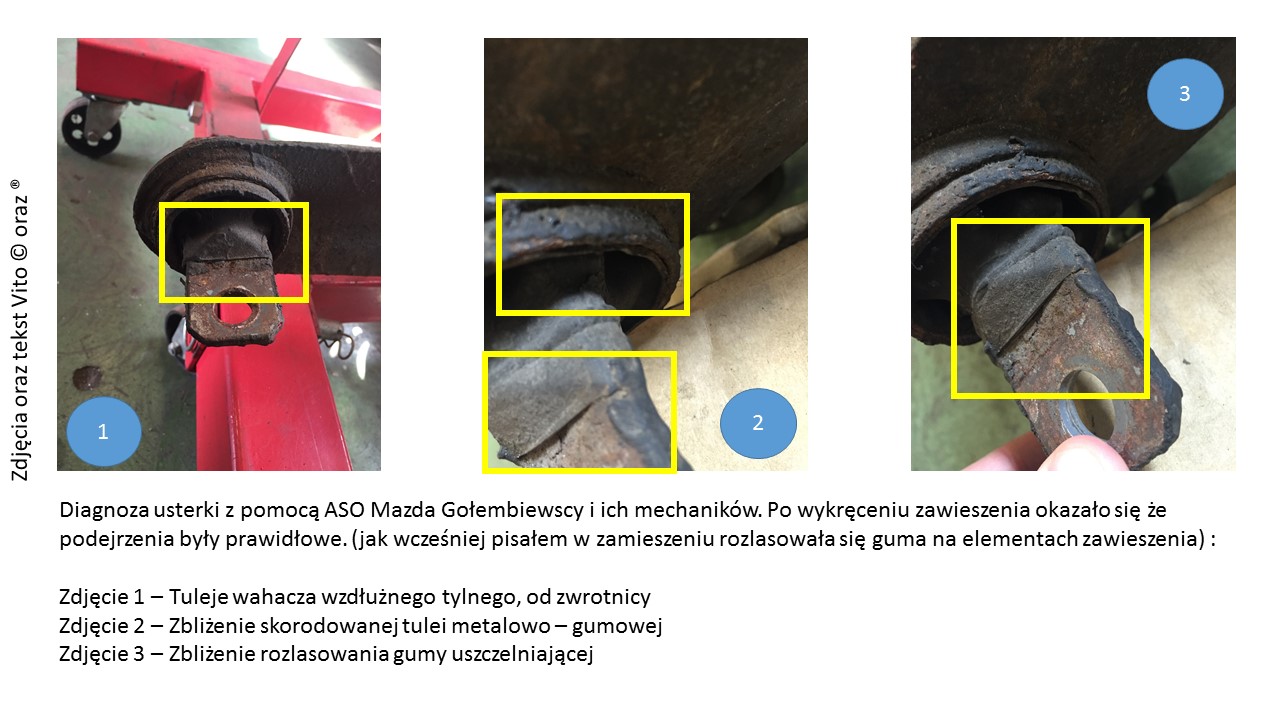 Zbliżenia na najważniejsze elementy zawieszenia, nikt nie chce kupić kota w worku, ocena przeze mnie i mechaników serwisu Mazda Gołembiewscy.