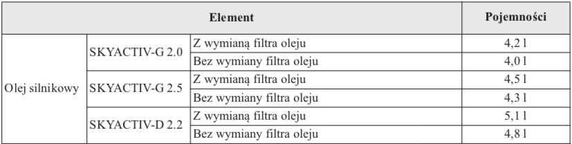 Silniki SkyActiv zostały zaprojektowane "pod oleje" o niskiej lepkości: SAE 0W20 (benzyna) oraz SAE 0W30 (Diesel) i takie powinny być lane, jeśli to tylko możliwe, aby w pełni wykorzystać możliwości nowych jednostek. Nie bez powodu figurują one w pierwszej kolejności, m.in. w polskiej (ale i japońskiej) instrukcji. Total, europejski producent olejów dla Mazdy pod marką Dexelia, również w sposób jednoznaczny i czytelny informuje na swojej stronie, które oleje dedykowane są do silników SkyActiv:
