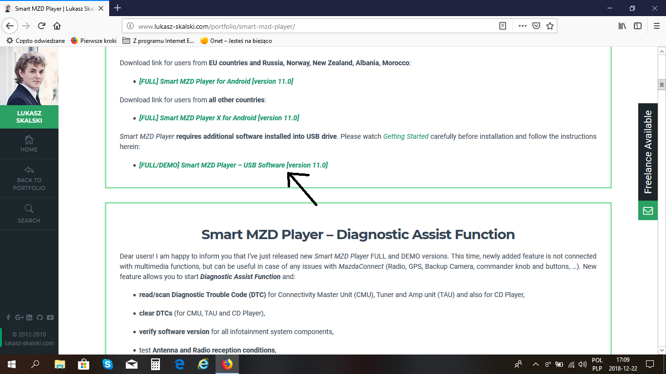 Gdzie mozna pobrać pliki na USB Smart MZD Player ? Na stronie autora link nie działa