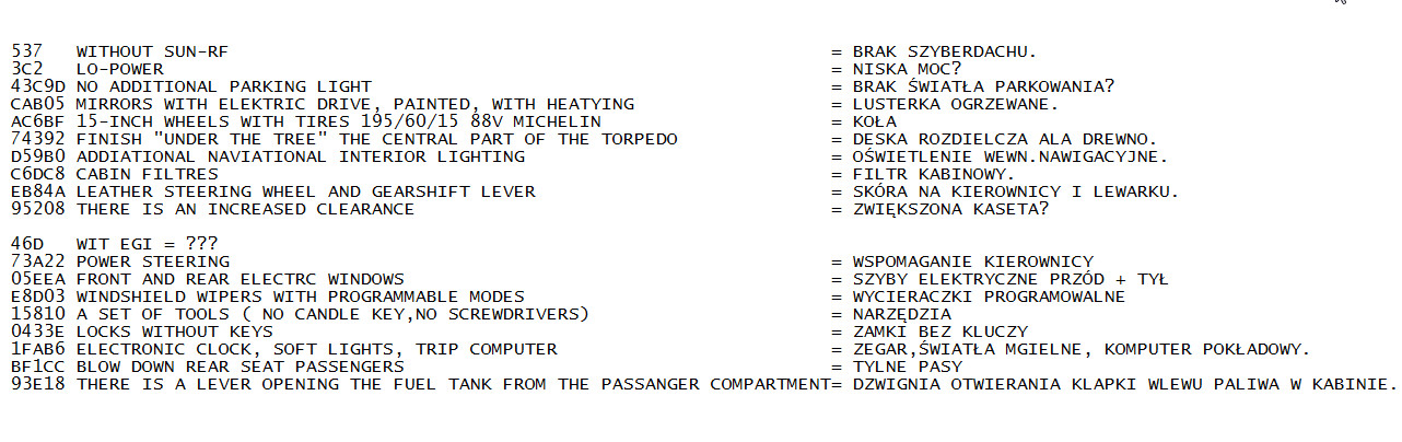 Witam i proszę o pomoc w rozszyfrowaniu wyposażenia mojej 626, 2,0 115,1999 z Niemiec.