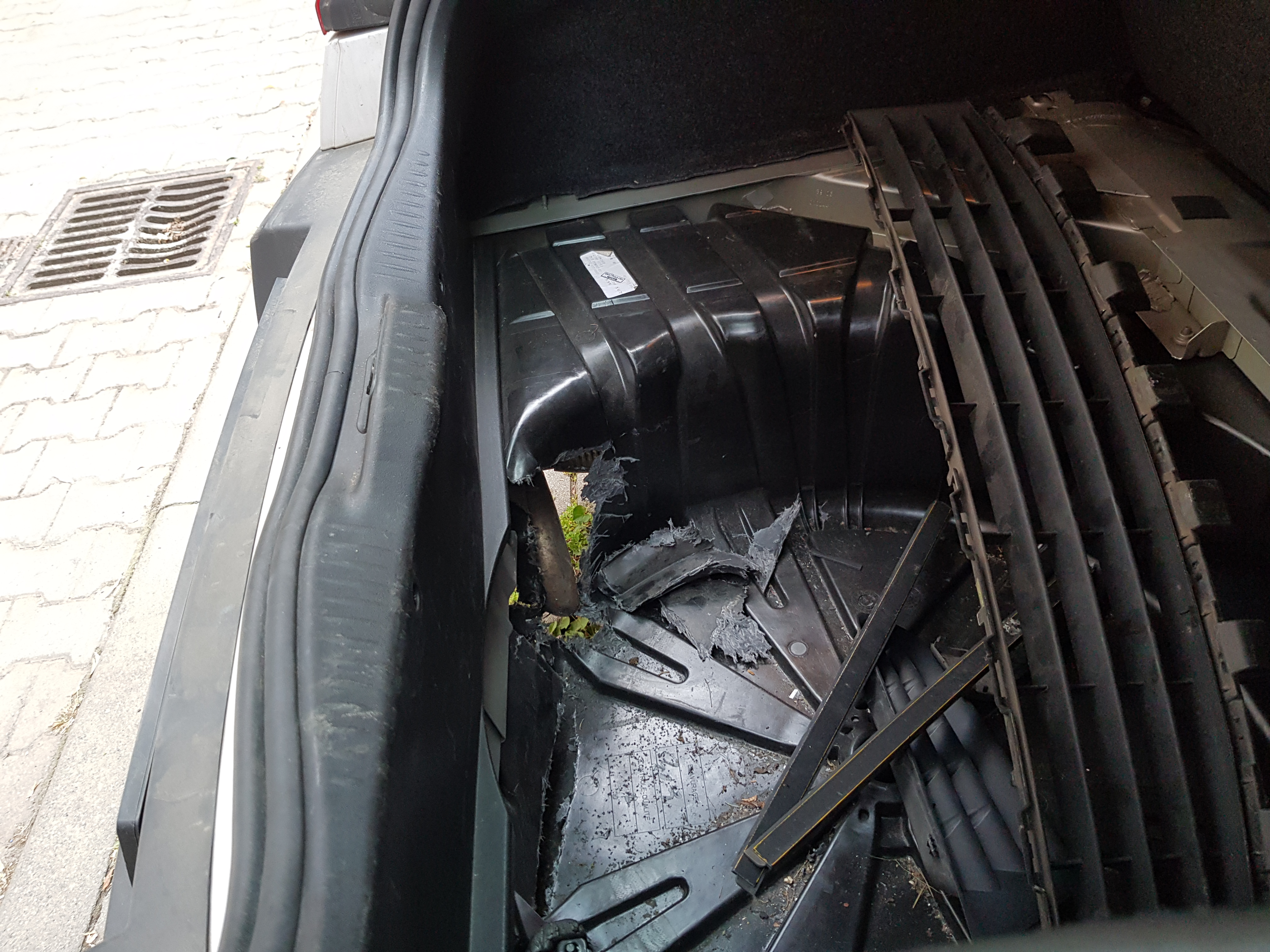 Po uderzeniu w tył rura się wygięła i wtargnęła do środka. Podłoga oczywiście jest plastikowa.
