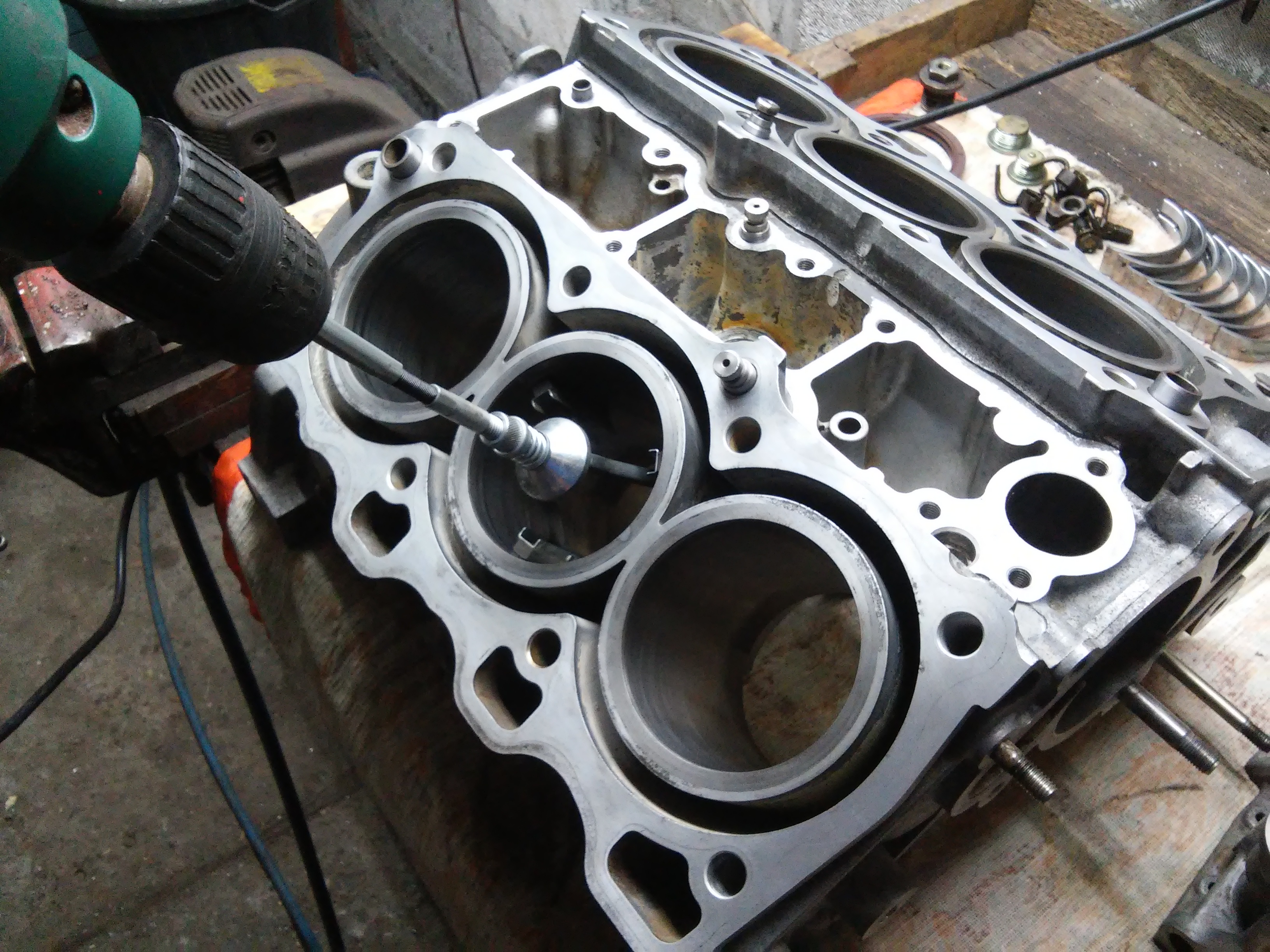 Wracając do tematu. Po przygotowaniu głowic trzeba było ogarnąć blok. Wszystko rozebrałem do ostatniej śrubki i umyłem. Wyrwane gwinty pod szpilki i pod rolkę prowadzącą naprawiłem srężynkami helicoil.