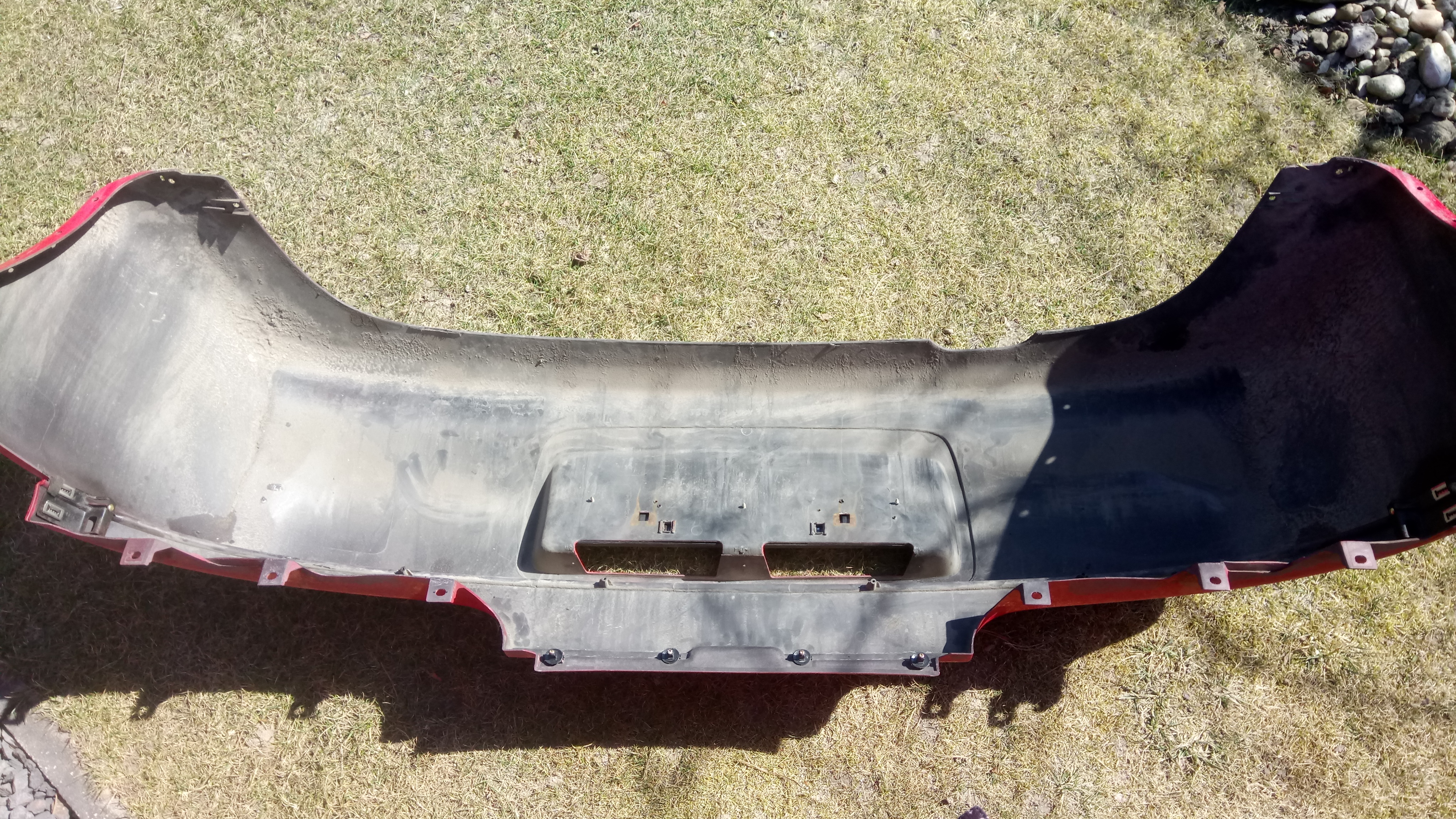 6) Odelżenie zderzaka tylnego – demontaż belki z i tak urwanymi gwintami przez poprzedniego właściciela, dodatkowo małe wyrównianie kształtu zderzaka od wewnątrz