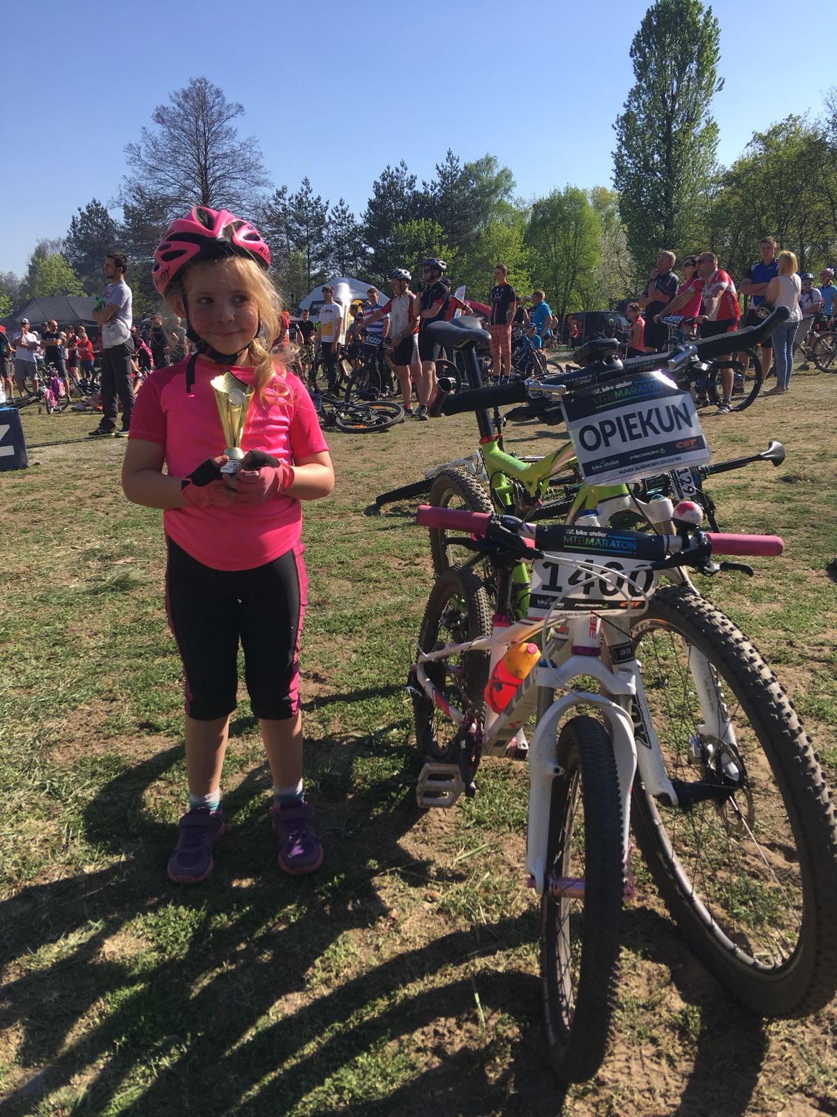 Nie, to rower tej 5letniej dziewczynki, córki mojego sąsiada, co startuje w różnych zawodach. Właśnie złożył dla niej nówkę sztukę na kołach 24J bo z poprzedniego wyrosła.