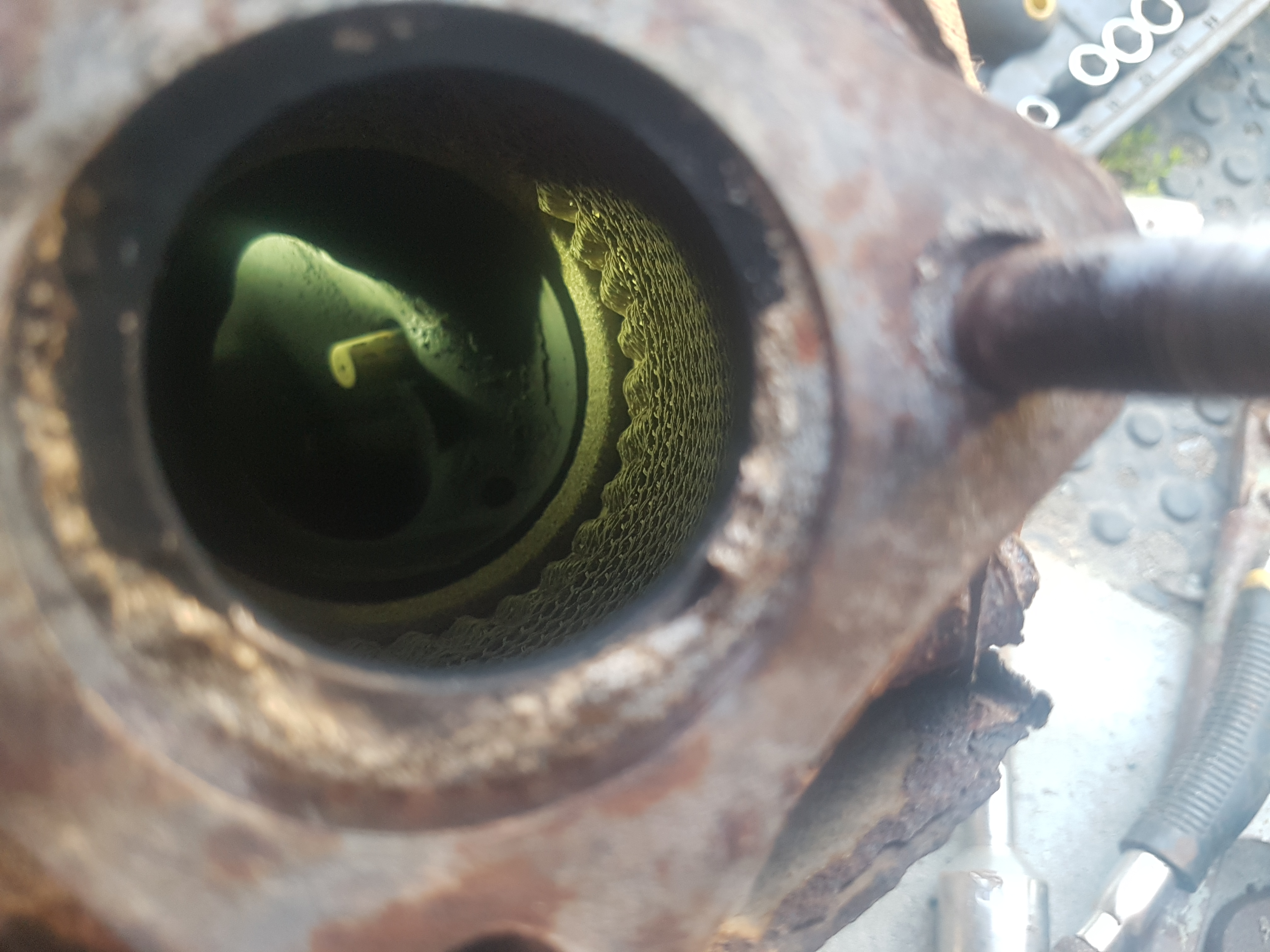 Teraz tak odnośnie prekatów to przedni okazał się pełny, ale czy jest w pełni drożny to nie wiem bo nie odkręcałem go od głowicy być może jutro to sprawdzę dla pewności drugi natomiast byłem zmuszony założyć mój pusty w środku (mimo iż mam drugi pełny od Jędrzeja) ponieważ ani sąda ani rurka od EGR nie chciały się poddać i dać odkręcić
