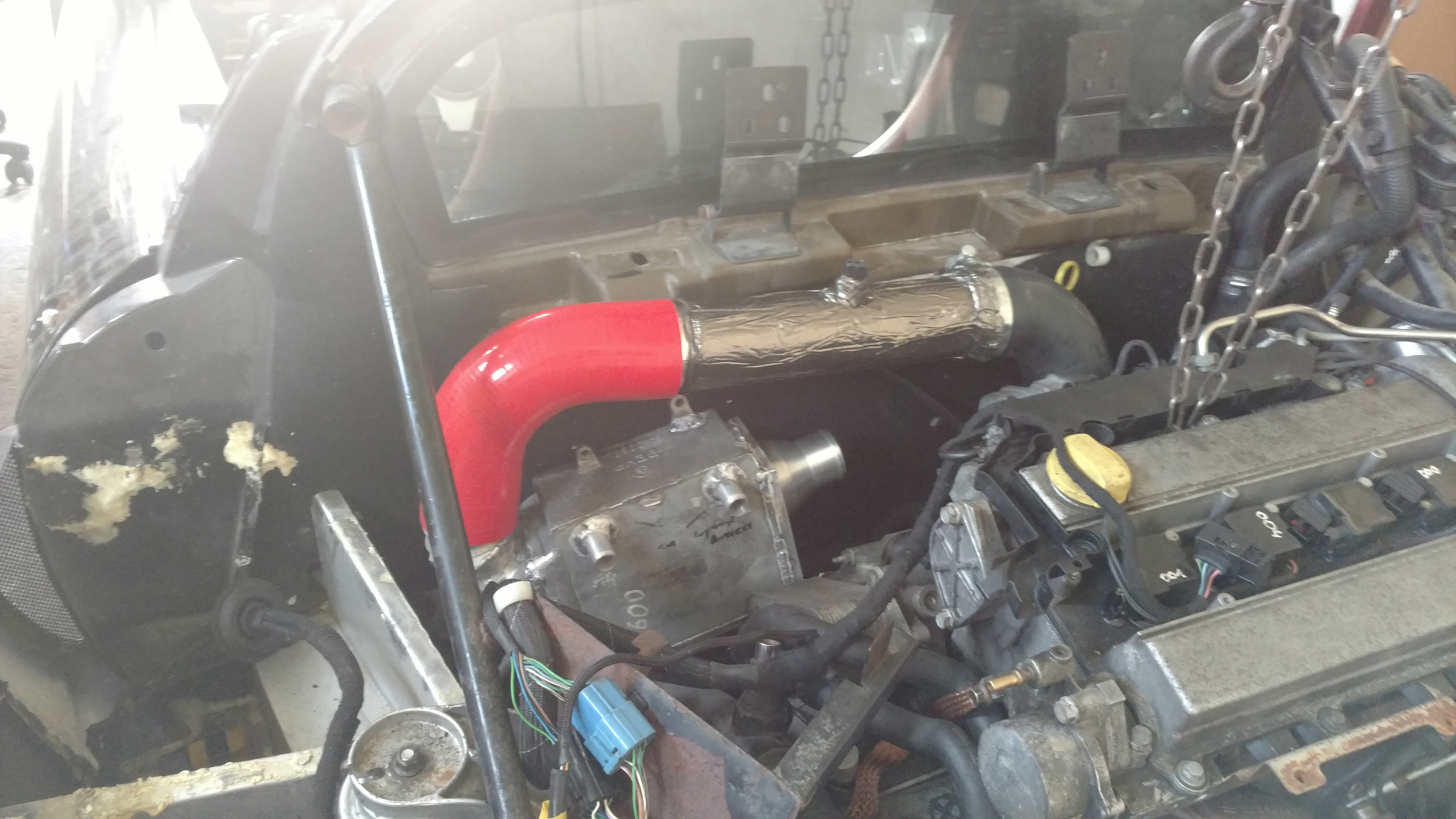 Za intercoolerem trzeba by pomyśleć o odprowadzeniu ciepłego powietrza w okolice koła ewentualnie wiatrak żeby nie puchł, można by było odpalać jak będzie za gorąco.